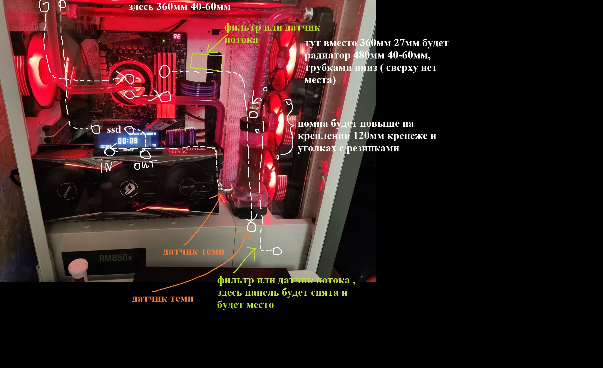 Абсолютно в точку. Дело в том, что корпус 7000D corsair оказался крайне неудачным выбором для жирного кастома. Несмотря на обзоры забугорных ребят и инструкции по эксплуатации ( где показывают аж по 2 радика 360 и 420 можно поставить ) на деле это чушь. Всё крайне неудобно и тесно сделано. Но тем не менее корпус очень нравится и базой хочу именно его сделать. Трубки я постараюсь согнуть по максимум , прибегая к лекалам и отказываясь от 90 и 180 град фитингов. Однако в любом случае штуки 3-4 точно будет. Плюс датчик потока и возможно фильтр ( пока не вычитал в данных ветках, сильно ли он делает погоду в хорошую или плохую сторону)