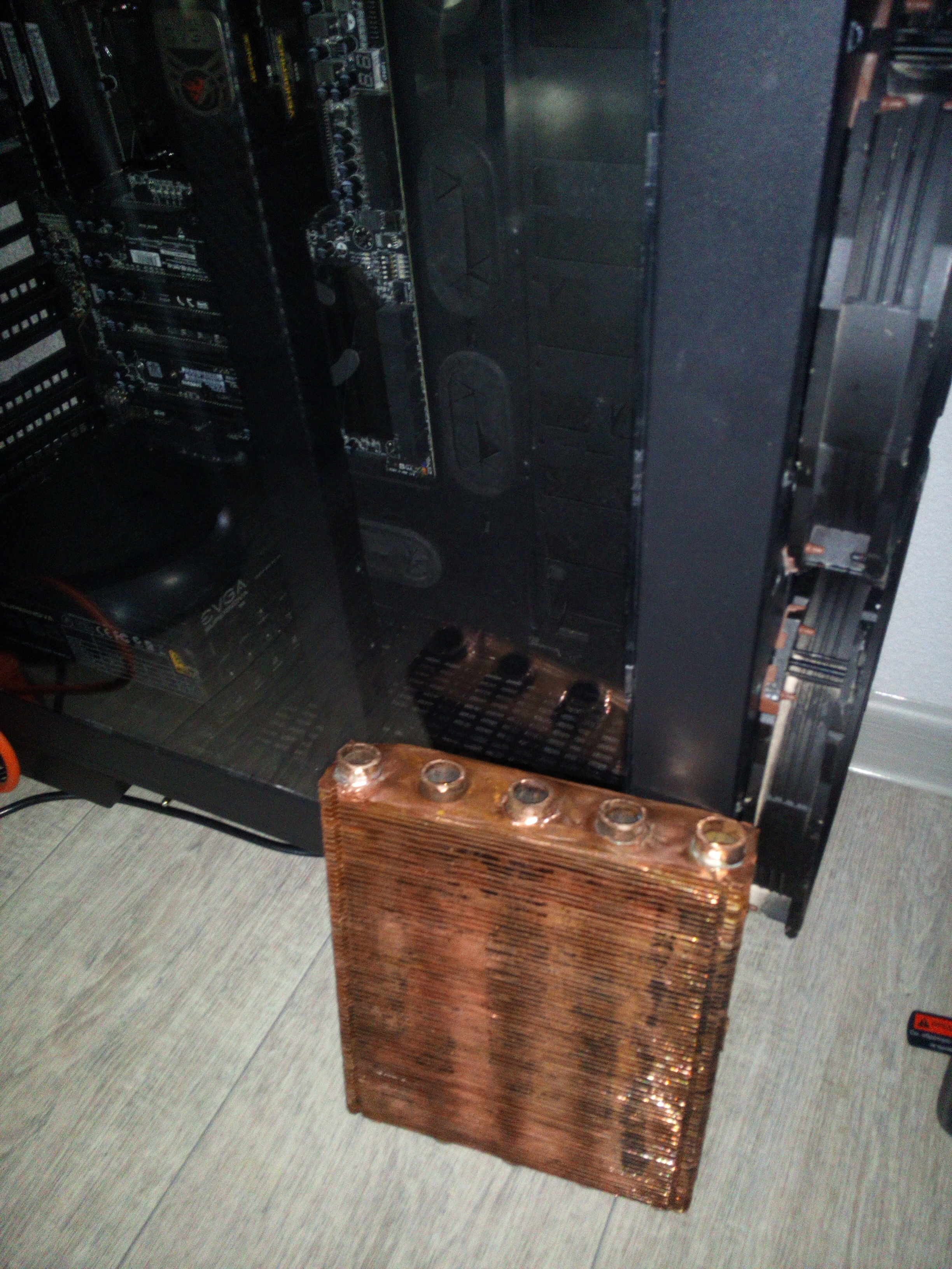 1.Да ждать как раз не охота, хочется контроллер с минимальными габаритами, и функционалом как я просил, 2 помпы. акваэра может? потому что корпус не позволит впихнуть 420 мм радиатор. 2.Я наверно или не так выразился, или вы меня не поняли. 10 лет занимаюсь монтажом СО и ГВС всеми известными материалами. Так вот фитинги под пайку так и называются фитинг под пайку. =) ну если совсем по научному, то под капиллярную пайку. вот посмотрите 3.Даже не собирался, честно, информации очень мало, курю забугорные форумы. Вопрос был именно о том что бы: а. Уйти от дорогих фитингов (углы, соединения, краны) б. Повысить надежность системы в целом (из за пайки) в. Уйти от дорогой и короткой трубы. поясню как вижу картину. Первичные фитинги все равно придется покупать, т.е. в водоблок, помпу, радиатор... т.к. система станет не разборной. но все остальные углы перейти на пайку (поверьте проще спаять, чем гнуть в миллиметры) и еще я практик, не теоретик, так вот газовый котел в 24Квт ду теплообменика и всей гидравлики от 15 до 18 мм, вы хотите сказать, что 10 мм будет мало для транспортировки 300 ватт?