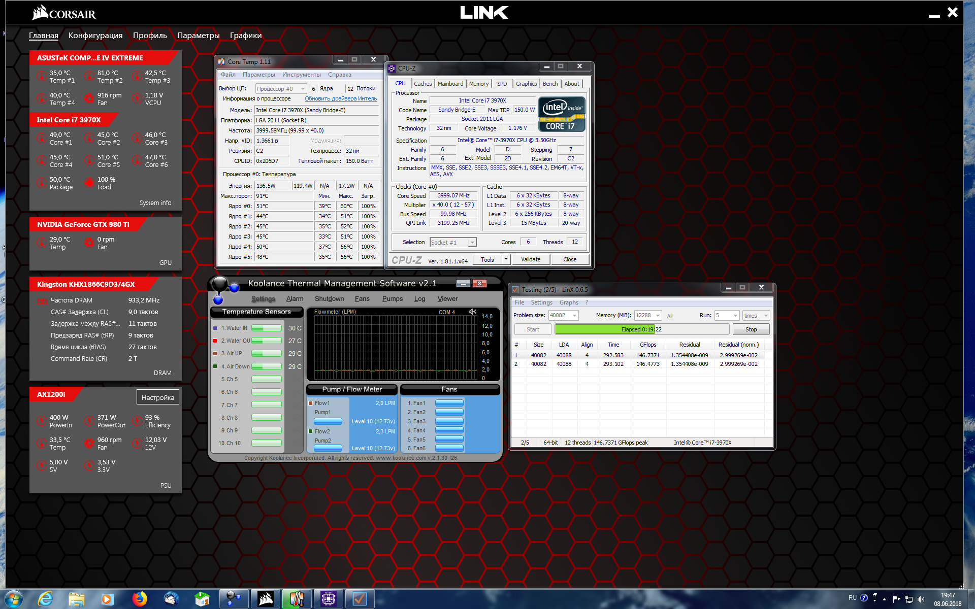 1. 2 Koolance 450s в топе EK-D5 Dual ниже резервуара 2. 2 Swiftech MCP655 в резервуаре Koolance RP452 X2 rev 2.0 (отсек вверху СБ)