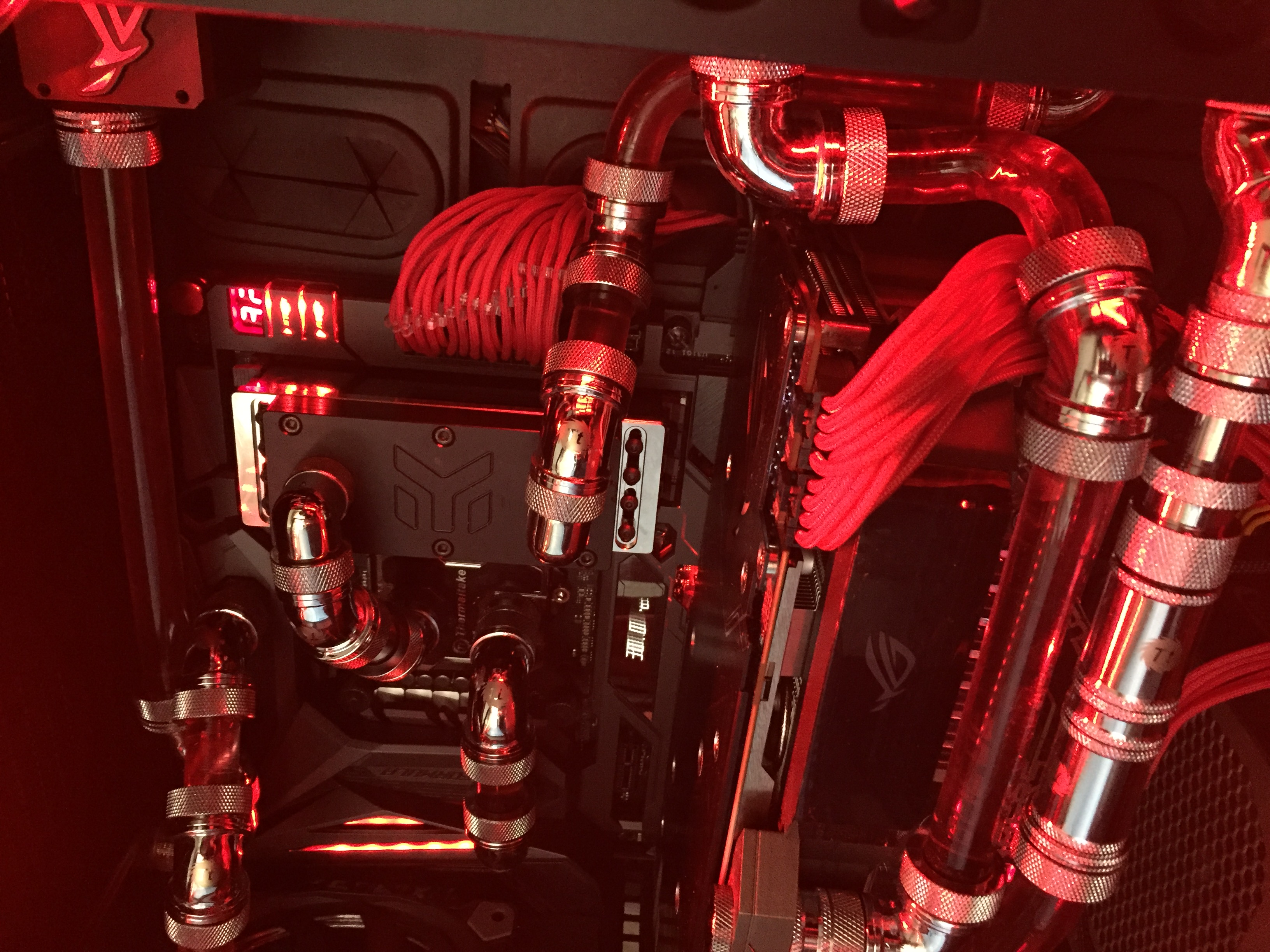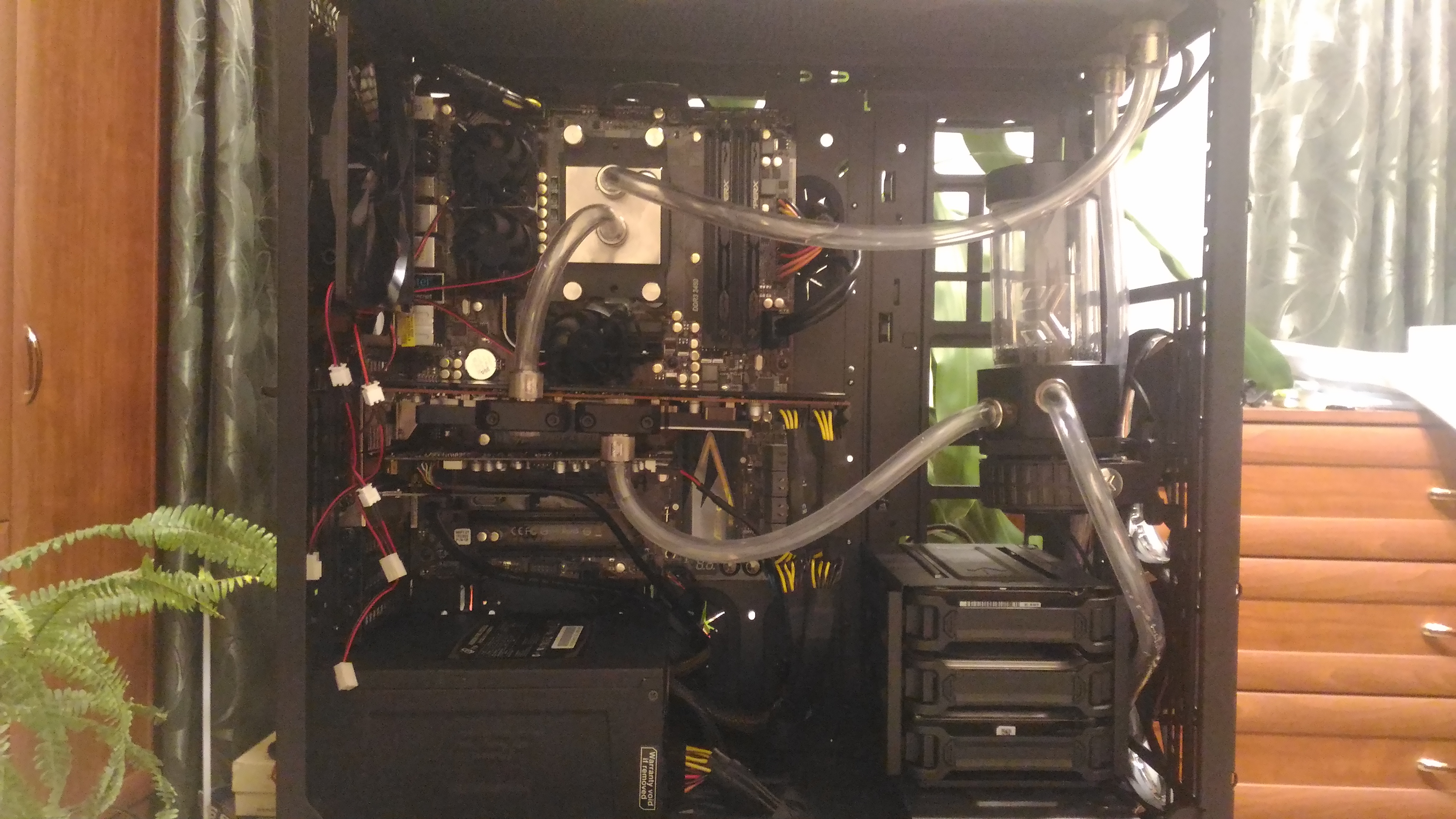 всем привет долго отсутствовал был в отпуске ,ситуация с моим детищем такая)))В общем кто будет мешать 3 цвета ек концентрата не советую в итоге все выпало в осадок на микро каналы водоблока на проц(при этом сама жижа из черной стала прозрачной ,вот это поворот)...Теперь вот купил новый вариант водоблока, но и старый водоблок тоже почистил, пока что промываю контур для нового водоблока...пришлось все разобрать и заново собрать...Занятие не из простых...Новый водоблок после прогона контура решил взять Ek supremasy edge black их всего 100 штук такого цвета выпущенно в мире, решил заменить на него..Обзора нигде не нашел вот хотел спросить кто что знает про этот водоблок от ek?И еще можно ли его будет воткнуть на старые крепления от Thermaltake?уж больно не охото еще и мать вытаскивать....для удобстава слива залива жижи и дистиллята пришлось снимать чехол для бп и аквакомпьютер(все равно разбирать потом)...В общем проект живет, но впереди еще очередная проверка на течь ,ибо как оказалось на контуре с этой черной жижей ставшей белой ,также сдох сенсорный датчик от аквы(интересно почему)..и я пока решил переделать контур и заодно воткнуть механический датчик потока от контура с видеокарты в контур с цпу так как он мне сейчас очень нужен именно там(контур от видяхи вообще идеально себя показал но я сейчас и его решил промыть) Из- за операций с датчиками пришлось переделывать трубку а на дырке в контуре от видяхи где должен быть датчик потока ,сейчас екстендер от тт.. Радиатор от термалтейк мне не понравился из-за большого количества отверстий...малейший недоворот заглушки и жди течь ..резьба для вентиляторов из-за частого откручивания быстро приходит в негодность..Сами температуры конечно неплохие но это не заслуга этого радиатора.Вертушки термалтейк итого во перестали работать на 10 винде нужно покупать новую модель старая уже не поддерживается программно...И я все таки решил взять корсары , т.к термалтейки разочаровали на уровне софта, сейчас вертушки крутятся на одной скорости и софт никак не хочет на 10 винде последней их видеть(про шум вообще молчу).В общем то, если бы жидкость не осветилась я бы даже наверное не стал бы заморачиваться но темпы повысились датчик сдох)..Немного прогнал такую вот неполноценную систему и почищенный водоблок в аиде 75 градусов потолок....даже не знаю хорошо это или плохо,но проги эти сами вольтаж ставят так что мне они уж очень не по душе .Больше минуты делать не стал переживаю за проц.