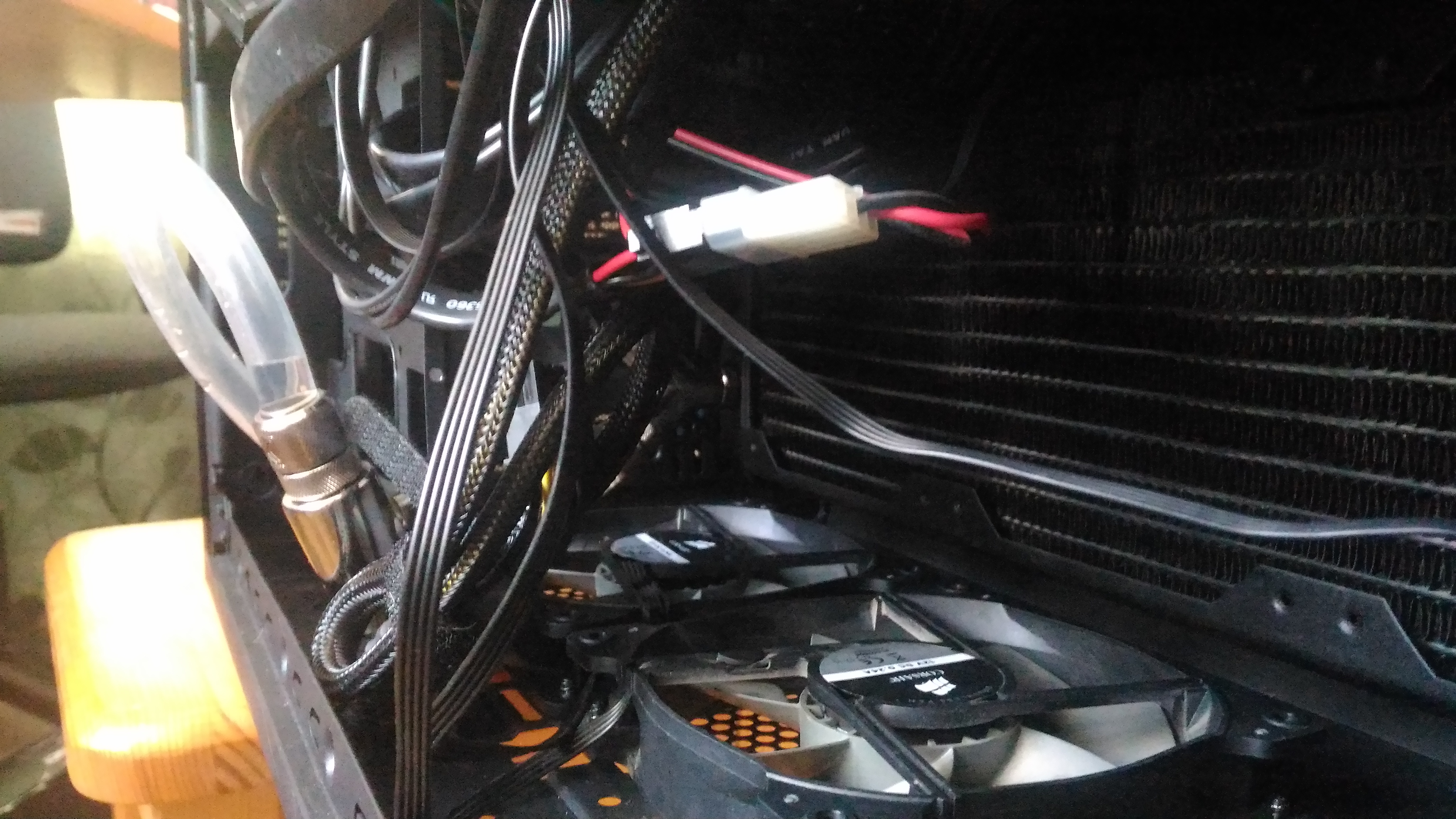 4.Пормпу опустить как можно ниже, либо вообще в нижний отсек, либо хотя-бы к уровню пола основного отсека - заметно облегчит заправку. И да на будущее НЕ БЕРИТЕ ПОМПЫ С PWM !!! не нужен помпе PWM от слова совсем, нигде и никогда, пвм помпой даже нормально прокачать контур без запитки основного железа нельзя. 5. вместо текущей порнографии на питалове либо поставьте один нормальный вентилятор, либо (что лучше) подходящий водоблок даже если заводского под вашу мать не делают - есть универсальные варианты.