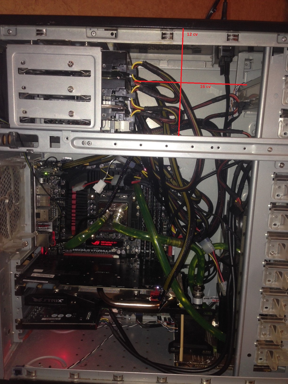 WhiteGhost85 как я и говорил ранее, начать с кабель-менеджмента. Это первое. Второе: радиатор можно повесить сзади, с обратной стороны вытяжного тылового вентилятора - это если ничего не срезая. Там можно поставить через шроуд хоть 3х120, если посередине закрепить. Если же срезать переднюю стойку под харды, то можно поставить 2х120 радиатор на морду изнутри.