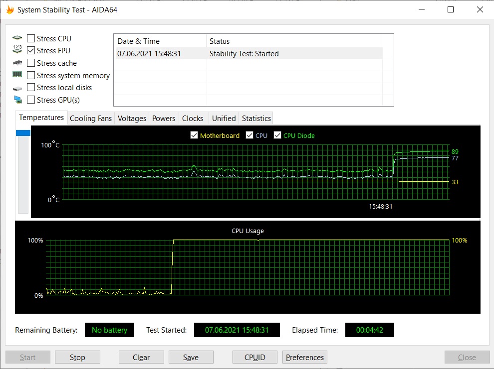 Вентиляторы на радиаторе зафиксированы на 500 rpm.