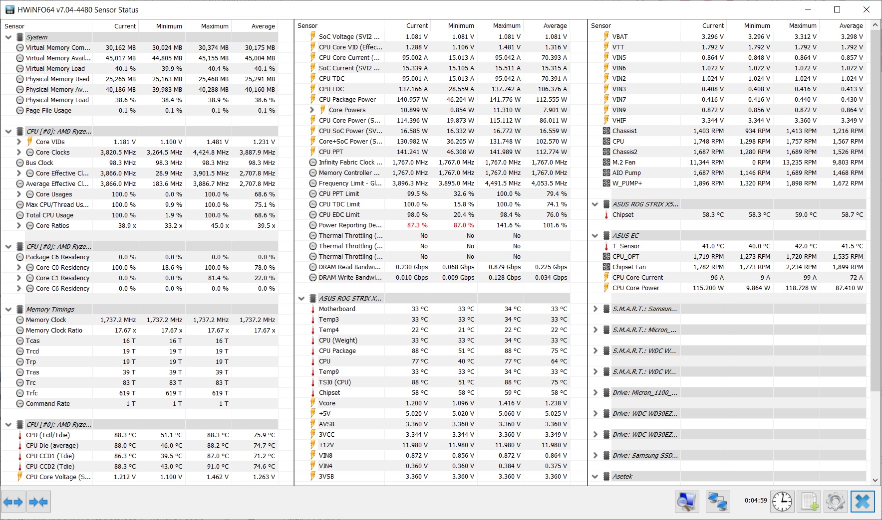 Тестирование - всё по умолчанию, ничего нигде не менял, только биос последний. Тестировал в AIDA64. Если кратко, то 65 градусов (проц 5950x, be quiet! 280v2) против 90 (проц 3900x, H115i platinum).