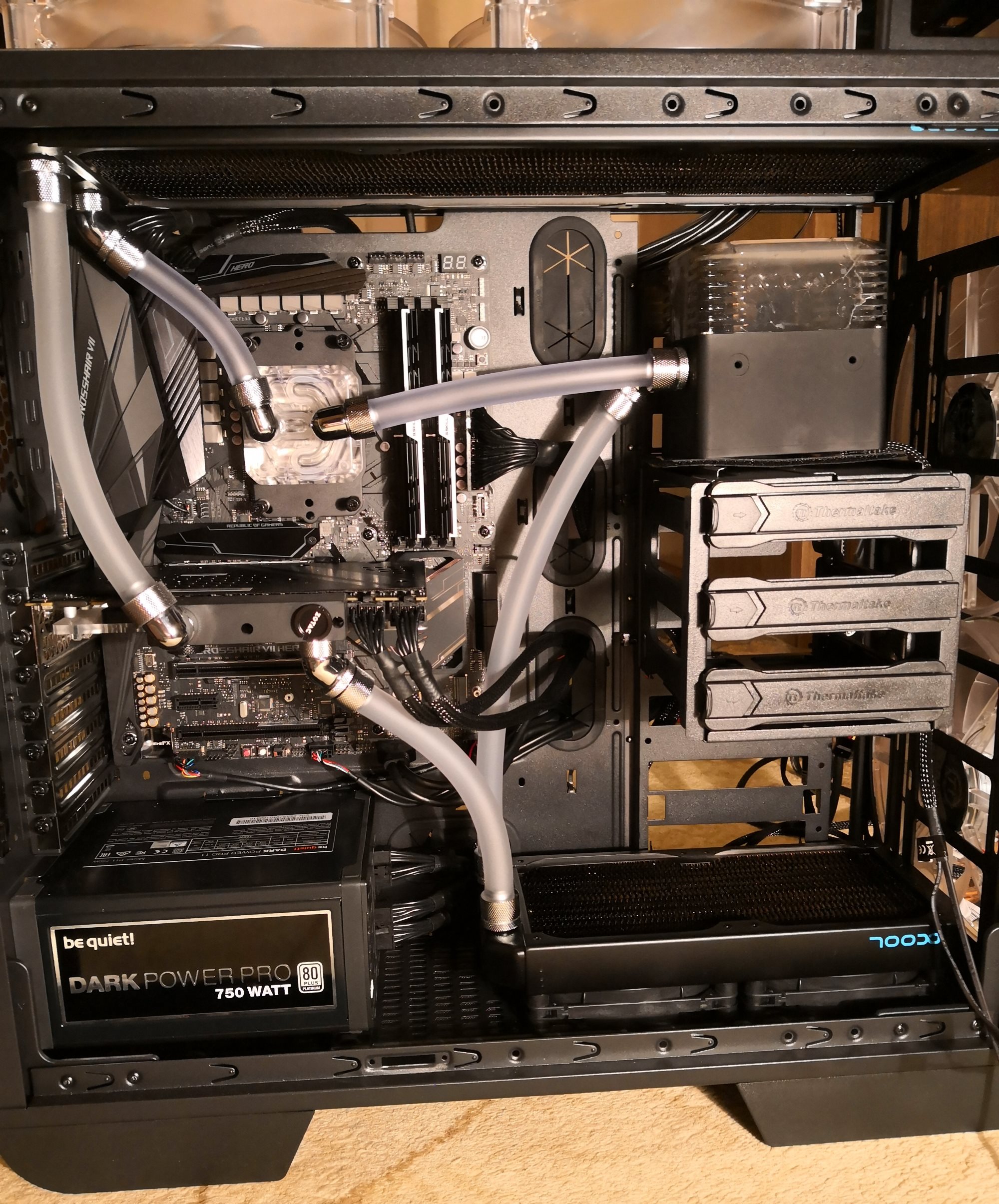 Доброго всем дня, заказана и уже в пути Вега 64 с референсным охладом. Так как слушать вой турбины желания особо нет, хочу перейти на СЖО. Сначала сделать для ВК, потом по наличию лишних денег еще процессор в контур включить. Так опыта нет, а в инете бывает противоречивая информация осталось несколько вопросов: 1. Компоненты bykski, barrow качества достаточного или утечки и замыкания гарантированы? 2. С точки зрения тишины/эффективности помпу брать встроенную в резервуар, отдельную или есть еще какие то варианты? 3. Пытаясь логически рассуждать думал, что резервуар должен быть верхней точкой для заправки системы, просмотрев фото готовых инсталляций увидел что зачастую верхняя точка это радиатор, как эту систему заправлять и как все таки правильно компоновать? 4. Радиатора под три 140 мм вентилятора хватит на эту систему, с учетом подключения в будущем процессора, или он только видео потянет? 5. Хочу вынести за пределы корпуса как радиатор, так как не вижу другой вразумительной компоновки. Другие компоненты тоже стоит вынести оставив внутри только минимум необходимого?
