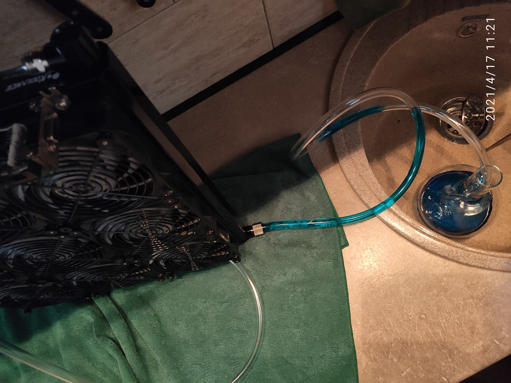 Всё собрано обратно, пробки откручены , ЖиЖа сброшена в тару --- камеры и нутрянка которая видна без вопросов, ЖиЖа без посторонних включений, прозрачна как слеза младенца... ЖиЖа вновь ушла в радиатор, порты закрыты пробками и радиатор готов к монтажу обратно на своё штатно-балконное место... Лишь один минус --- там на балконе минус 21*С --- нужно повесить радиатор + подсоединить шланги + накинуть фишку питания-контроля карлсонов/терморезистора ---- в несколько приёмов думается осилю не обморозившись...