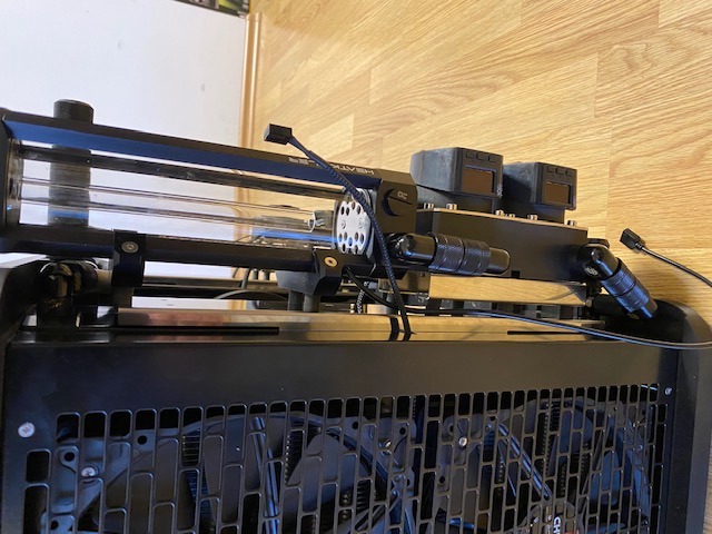 upd: Сткан пришлось чуть приподнять, иначе не получалось соединить радиатор с топом через фитинги. А так получилось аккуратно.