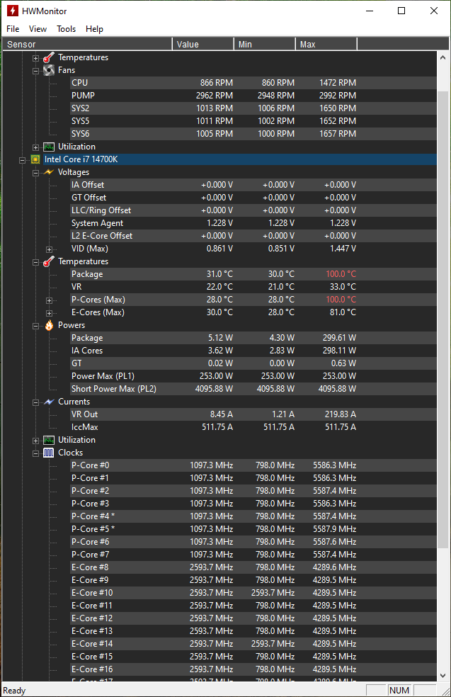 Будем считать, что данная СЖО с 250 Вт справляется. Комфорт считаю около 200 Вт, что вполне хватает для моего 14700К. 300 Вт очевидный перебор, температура стучится в 100°С. Ничего в настройках проца не менял, стандартный профиль intel. 300 Вт это уже поигрался, но несколько процентов производительности этого не стоят однозначно.