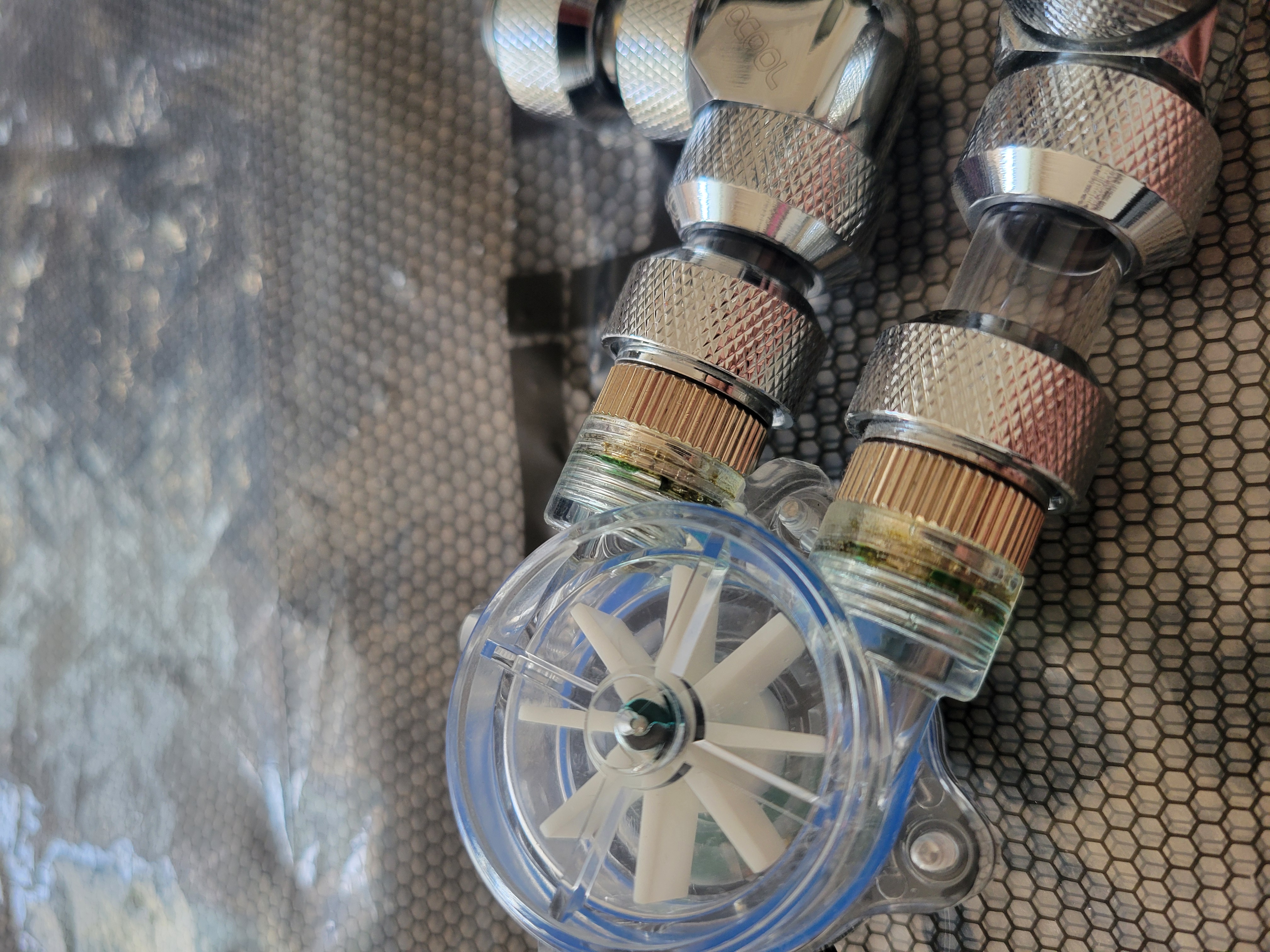 Gottlieb "такое" в аио случается от того что радиатор алюминевый а водоблока подошва медная, ингибиторы коррозии помирают и выпадают в осадок вместе с продуктами гальванической коррозии... похоже было на древних наборах воды от залмана, но т.к. там не было узких каналов доработать они могли и до сквозной коррозии.
