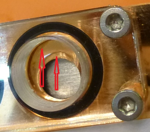 Отверстие в МЕ смещено по центру относительно порта акрилового и вот эта выемка как бы центрует "отверстия" относительно друг друга, формируя и разгоняя струю ЖиЖи... Интересное решение, как вы упомянули проще было сделать большие отверстия в Ме и сделать их соосно с портовыми акриловыми... В общем что-то немчики хотели этим сказать...
