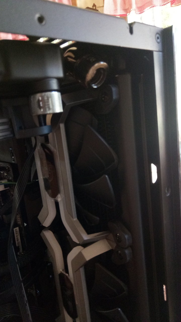 Да и предупреждали же меня (читал вернее на форуме этом), что вначале надо все прикинуть. Ну я посмотрел по видео, что все ок в этом корпусе все поместится без проблем. Я заказал всего с запасом и в evopc мне еще сказали что угловые фитинге не обязательно. Сейчас понял что здорово промахнулся, что не взял больше углов... Корпус заказал а райзера не было. В городе (СПБ) не найти вообще нормальных. На вид лютый самопал, побоялся рисковать. Купил от fractal + стойка от cooler master, пришлось сверлить и пилить. Кстати кому интересно по поводу корпуса. Вообще такой себе по качеству. Я большой поклонник lian-li до этого были их корпуса и качество было превосходное. А тут ужастно тонкий метал, от любого касания царапина. Ребенок его помять может. Стенку боковую пришлось гнуть чтобы ровно встала. Да и цена на самом то деле большая очень. Ты же не поставишь в такой корпус безликие черные вертушки, а за rgb сейчас цены совсем неадекватные. В общем на вид мне он очень зашел, и фильтры где надо, но места не много и качество самое низкое что я когда либо видел у Lian-li.