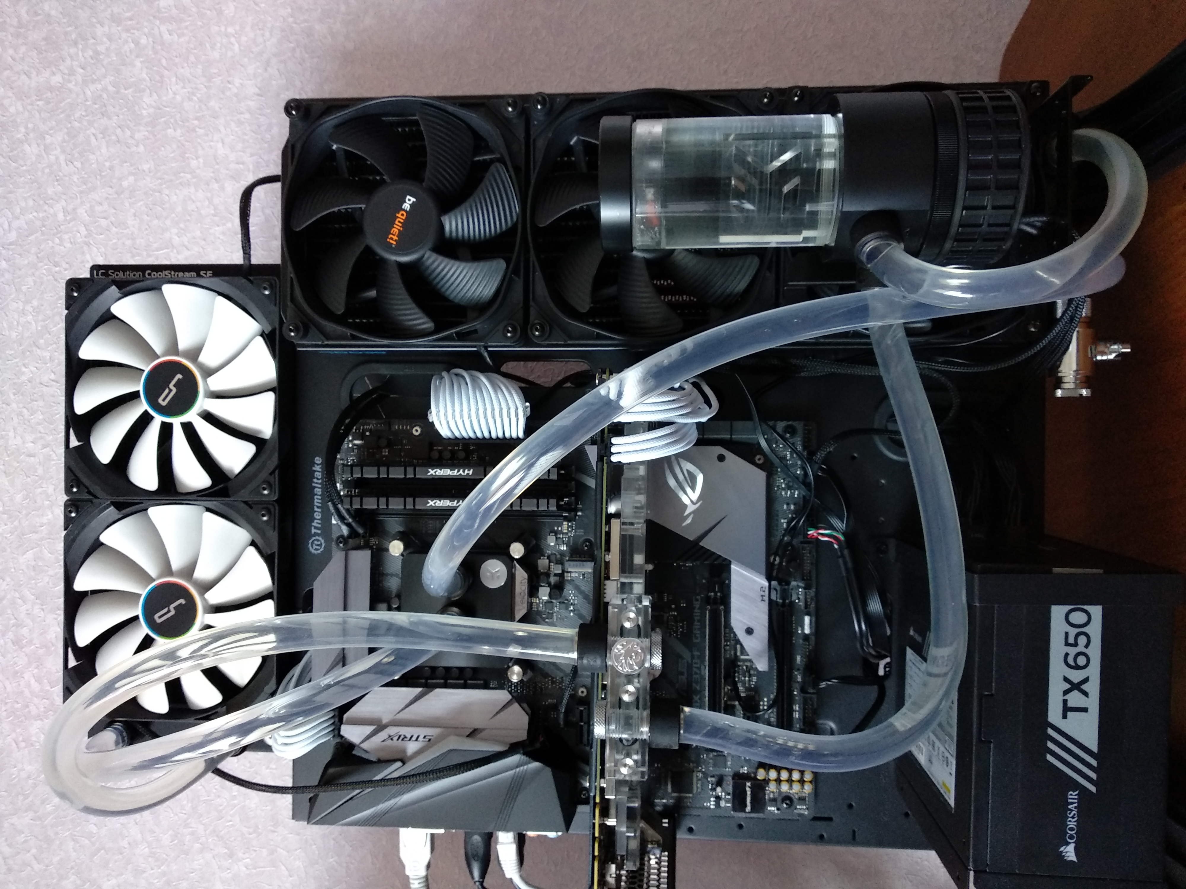 Добрый день. В общем, купил на свою голову 9900К. До этого всегда пользовался воздушным охлаждением, сейчас же подумываю о СЖО. Даунвольтинг всего, что можно сделал. Температуры все равно доходят до 85 градусов при полной загрузке CPU. (Все лимиты отключены). На данный момент охлаждается он башней Noctua NH-U14S в корпусе Meshify C. Дополнительно установлены два 140мм вентилятора на вдув, так же от Noctua. Один 120мм на выдув, этого же производителя. В приоритете у меня тишина, далее температуры. AIO категорически не хочу. Была Corsair H110i - шумно, выигрыша в температурах не заметил. Просмотрел кучу роликов на Youtube и, если честно, так и не понял, дает ли кастомная СЖО более низкие температуры, в сравнении с топовыми воздушными кулерами. Единственное, что нашел - это ролик-сравнение от JayzTwoCents, но у него, как я понял, производительность СЖО уперлась в термоинтерфейс под крышкой 8700K (без снятого скальпа). Дурацкий материал, но ничего лучшего не нашел. В основном, сравнивают AIO с башнями и это совсем не то, что нужно. На данный момент присматриваюсь к готовым китам от EK. Даст ли такой кит тишину и температуру в районе 70 градусов под нагрузкой или же все это бесполезно? Спасибо. P.S. VRM мне охлаждать не нужно, т.к. материнская плата у меня XI APEX. Думаю, легкого ветерка в корпусе должно хватить, чтобы держать их в нормальном температурном режиме. P.P.S. Ну и самое главное - насколько страшна СЖО для человека, который никогда не имел с ними дело? Так ли велик риск протечки? Если это имеет значение, то у меня ПК, как правило, работает в режиме 24/7.