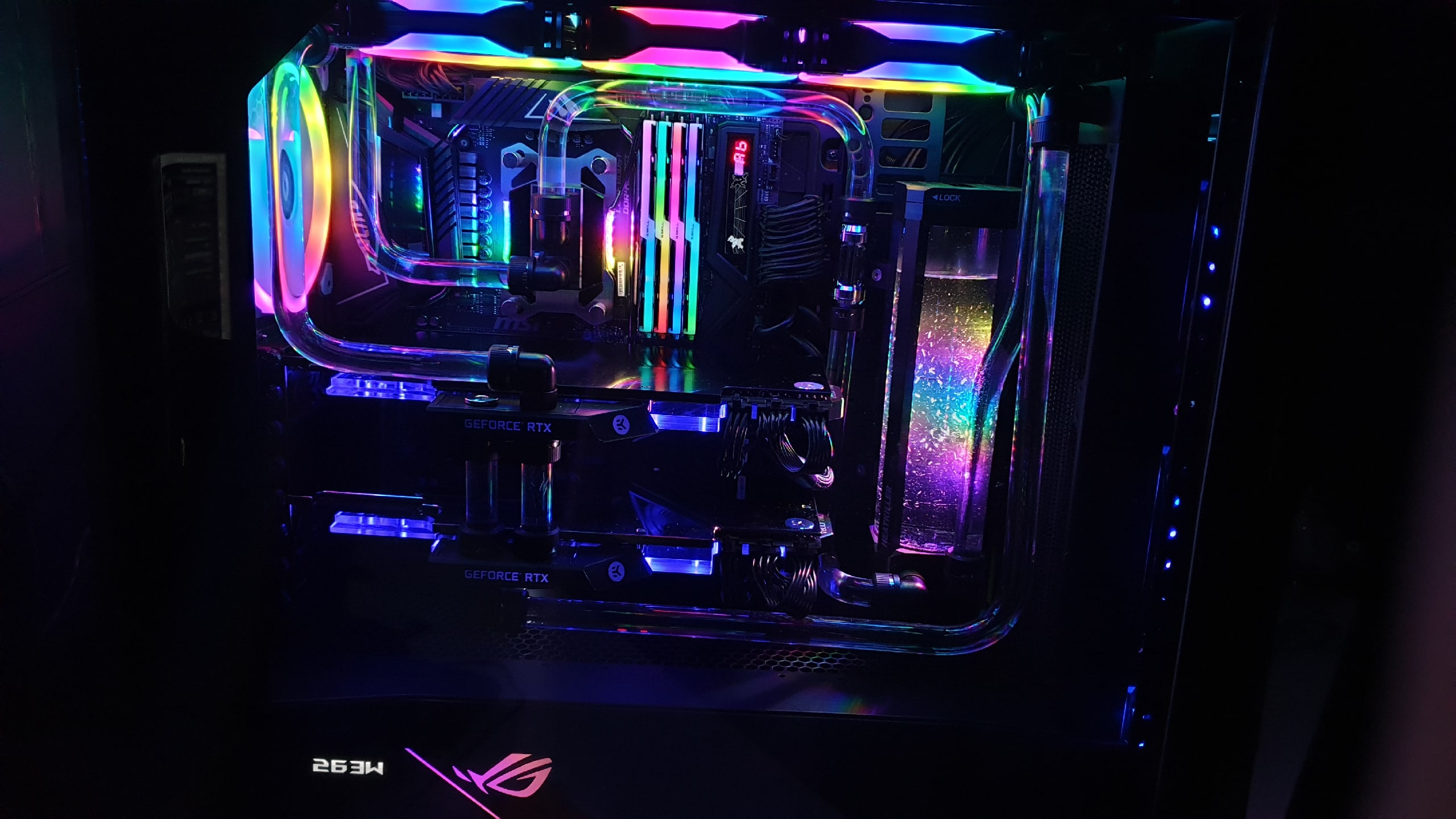Пока сижу на радуге=D, так как вентиляторы не синхронизировать с MSI мистик. Жду когда контроллер от термалтейка придёт с ним вроде можно синхрон поставить и поставлю синий цвет) Я и воду пока не крашу из за температур