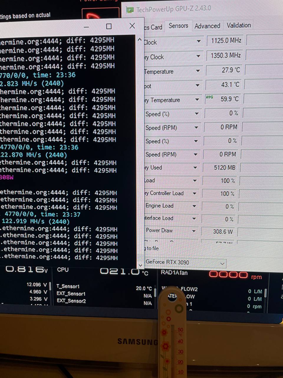 Хочу вынести PE360 ekwb на балкон. При первых попытках темп охлаждающей жидкости упала до 20, карт до 55.