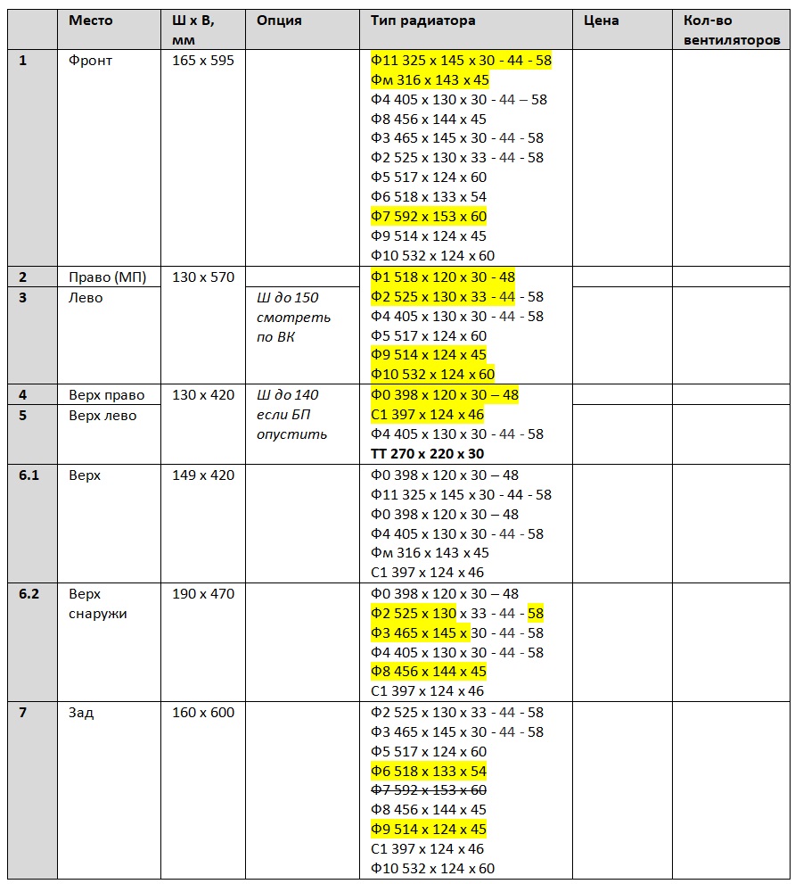 БП была мысль повернуть на бок, но пока не понятно а зачем? И так встают радиаторы, я таблицу с вариантами почти доделай, нужно чертеж нормальный сделать.