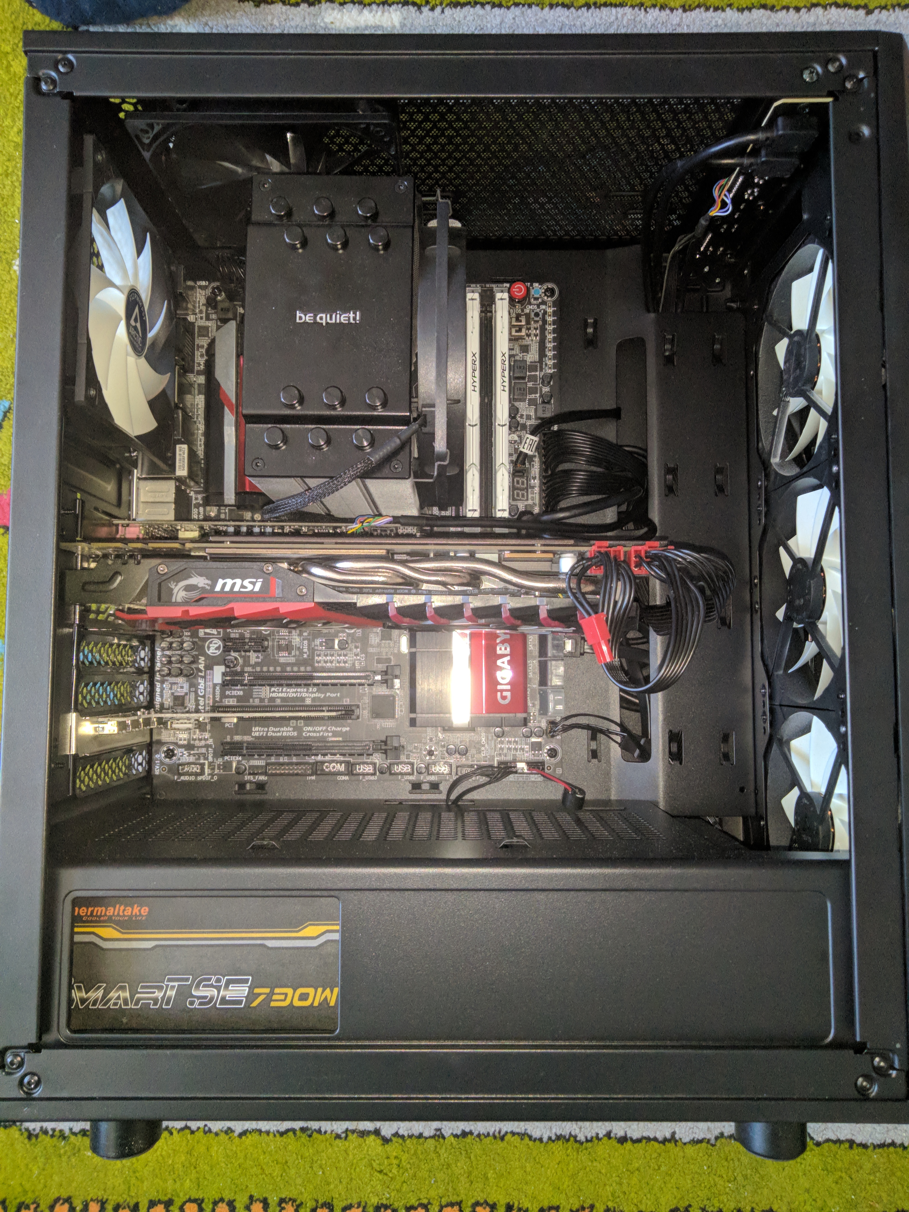Как думаете, с точки зрения потоков все норм? Может сверху вентилятор убрать, верх и так "дырявый"?