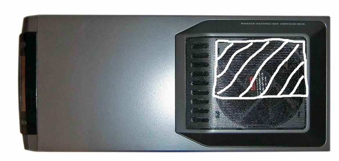Приветствую комрады ! По совету заказал два Pure Wings 2 (BL046) на выдув (тыл и верх) . Если на половину снизу заглушить верхний вентилятор ,чтоб тянул больше из зоны врм ,а не мешал ходу воздуха через процессорный кулер ? (см. скрин.) Сам я не уверен в правильности решения ,но так делают в блоках питания.Второй вопрос : нужен ли на крышу производительный вентилятор если на вдув 4 на 800 об и один от видеокарты 1500 об (вкл если на видео достигнута температура более 60 гр) ? Да, буду менять вентиляторы отпишусь про пыль в корпусе без фильтров.