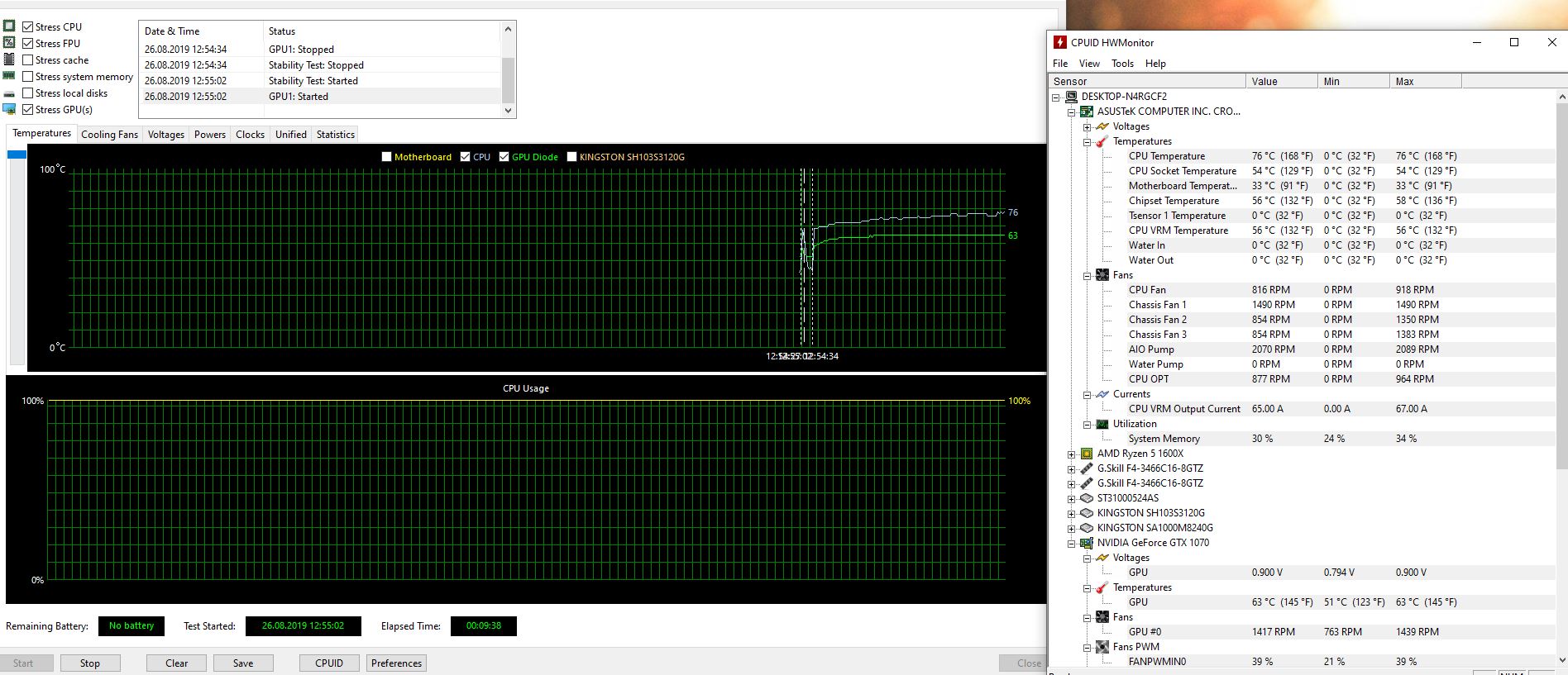 Что было предпринято: всевозможные перестановки корпусных вентиляторов. Установка колхоз-комплекта от asus: asus x399 cooling kit. Закрытие-открытие отверстия над pci. Разводка кабелей и шлангов.