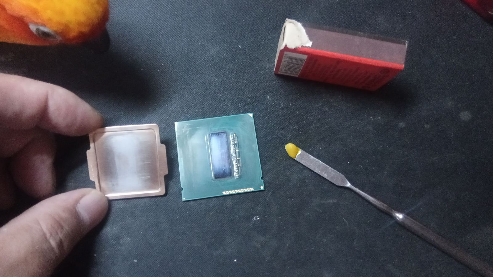 2. поставил простой термоинтерфейс- пришлось сползать назад по частотам, т.к температура не позволяла- не айс. 3. Разобрал, крышечку позолотил, выглядит тоже к стате прикольно золото й интел