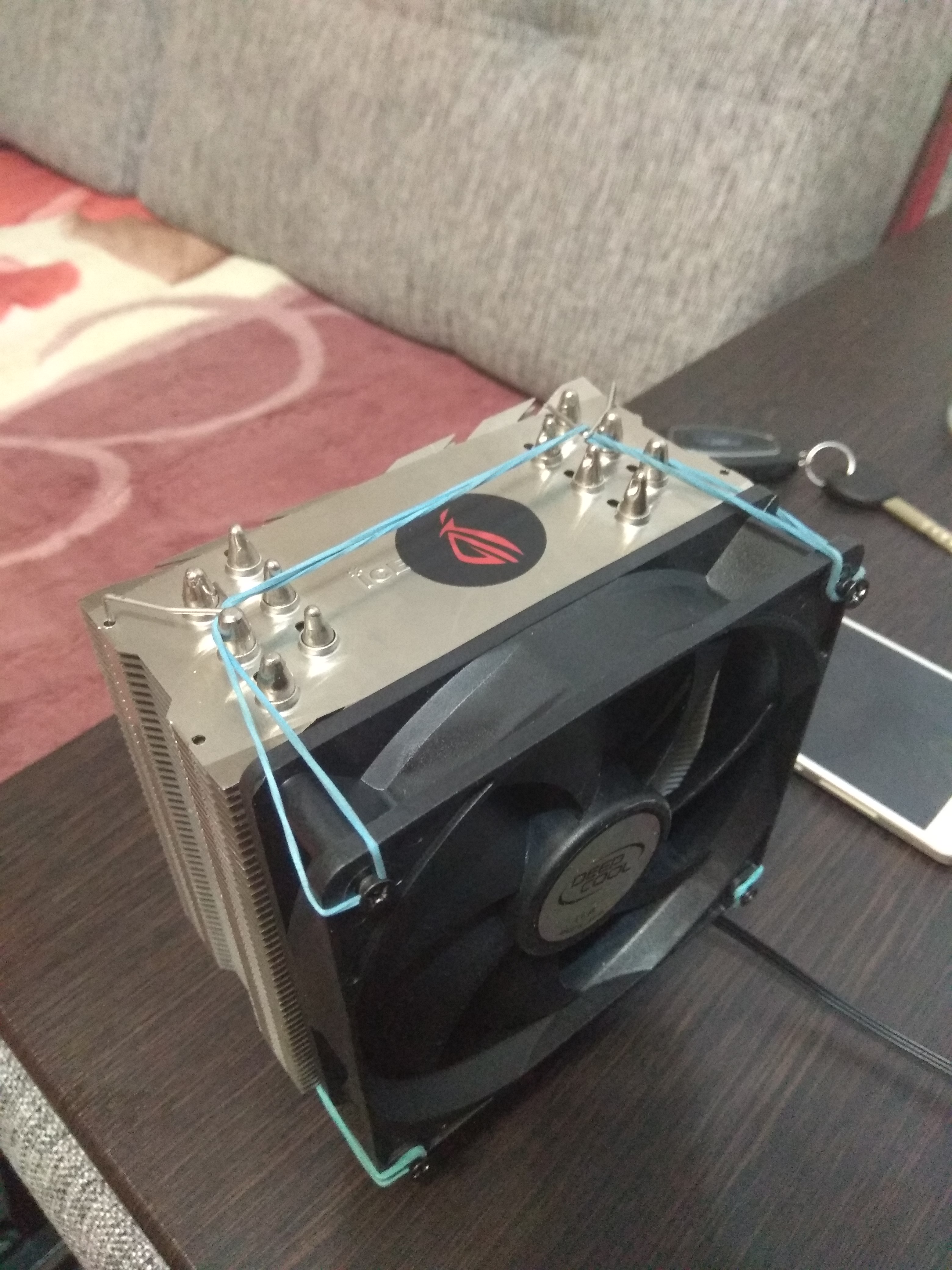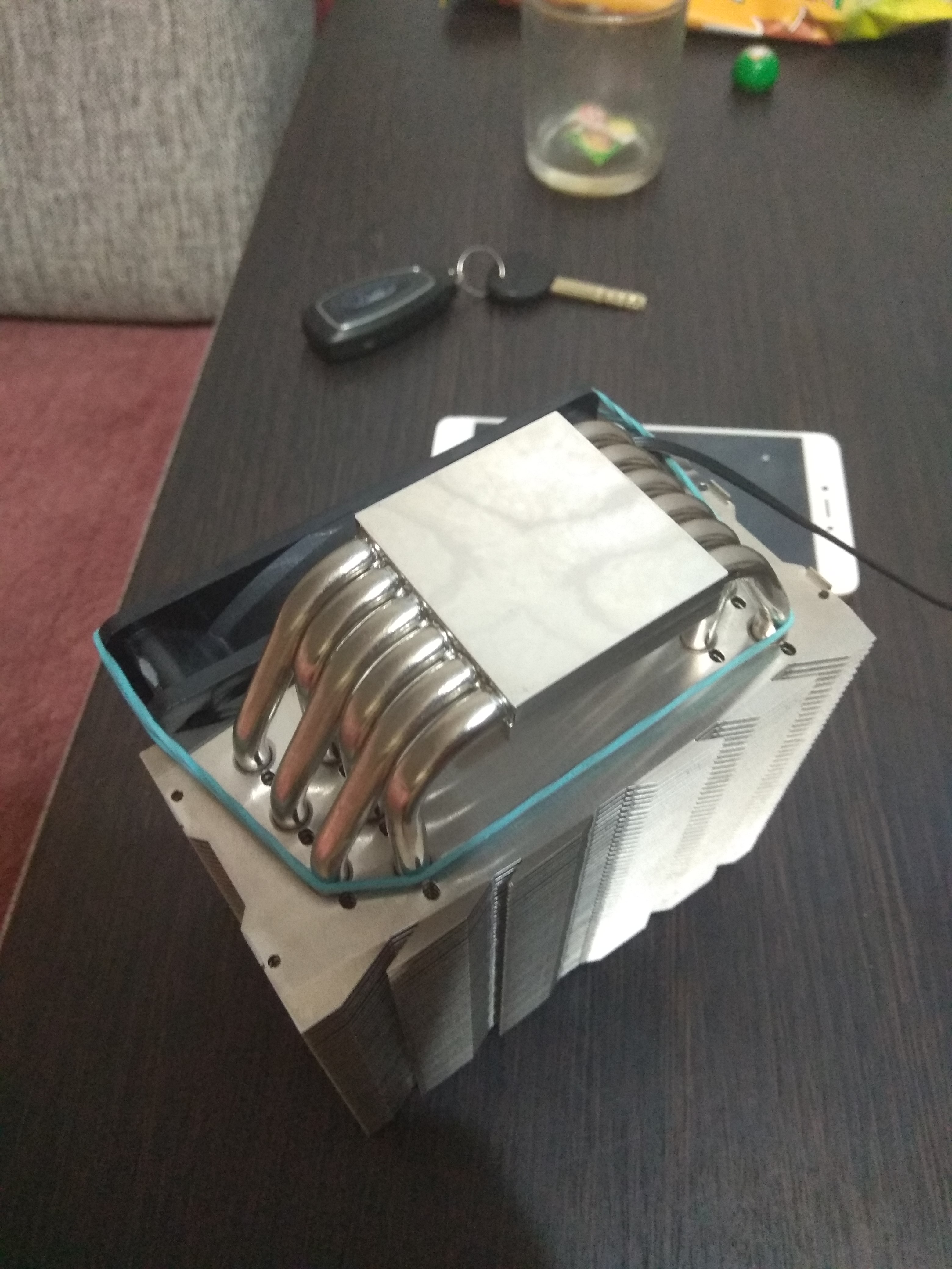 Ну вот сейчас допустим просто примерил 120 мм на резинках, его с места не сдвинешь , и это еще резинки убогие без натяжки , а на места соприкосновения радиатора и вертушки наклею вспененную самоклейку типа двухстороннего скотча только клеющая основа с одной стороны или есть у меня еще кусок силикона 2-3 мм толщиной очень мягкий .., думаю вибраций при механическом контакте только с помощью резины передаваться вообще не должны