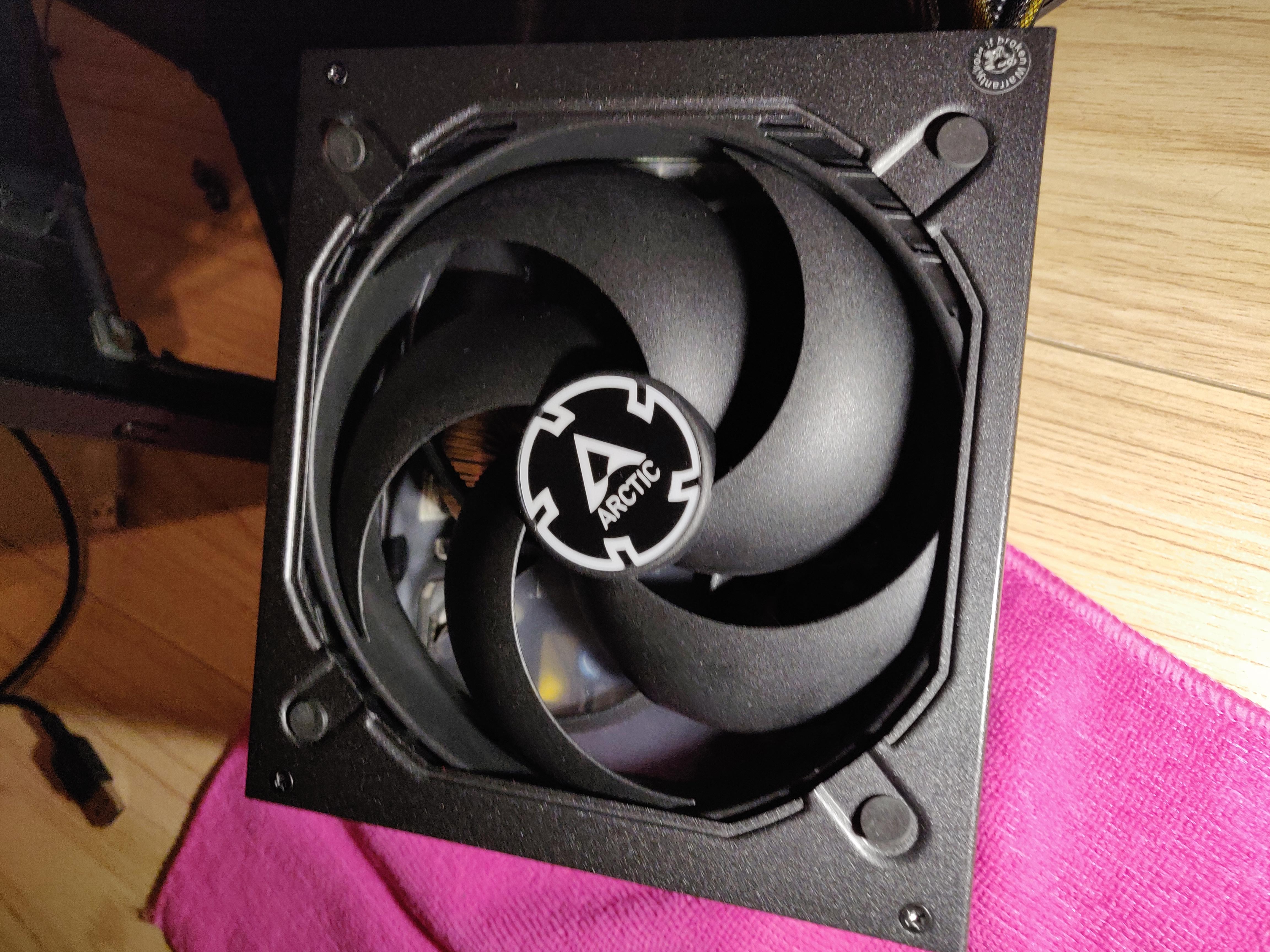 Блок питания ocz modxstream pro 500w. Родной 135мм кулер затрещал и смазка помогала на небольшое время. Заменил на Arctic P14 PWM PST CO с двумя шарикоподшипниками. Поставил его на силиконовые гвоздики. Решетку гриль назад не ставил, т.к. БП стоит внизу корпуса, у которого есть своя решетка. Вентиль стартует без проблем, воздух из БП холодный даже в нагрузке. Полная тишина.
