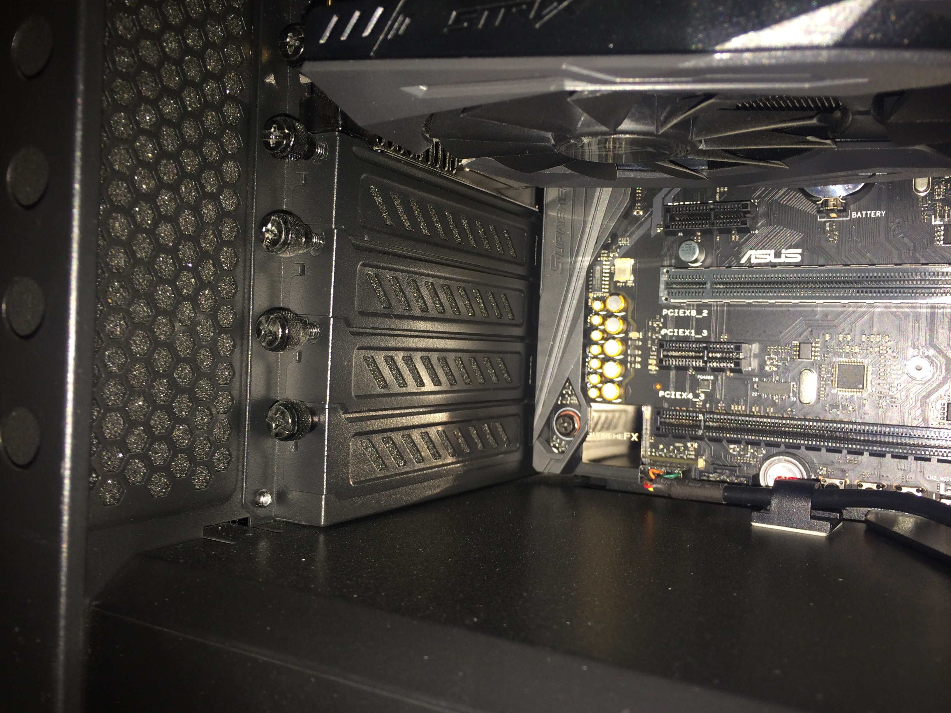 Если открыть заглушки под в/к, оно не будет воздух оттуда засасывать? Я планировал планки под в/к убрать, но фильтр оставить, а над в/к просто планку убрать. Ну и в целом тогда уж по охлаждению спрошу, устал разные варианты пробовать. Как сейчас: