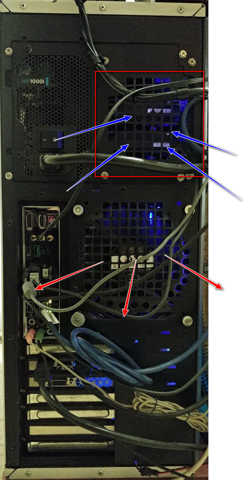 На картинке 2 вытяжных устройства и 1 приточное В верхней части(область Psu,Hdd,Sdd) я имел ввиду выход воздуха в общем(решётка)...в этой области нет вентилятора. Кстати я тут задумался что эта область (Psu,Hdd,Sdd) возможно работает как приток (в отличие от картинки)?! Вентилятор Psu включается только под большой нагрузкой ~450Вт(ZeroRPM) или достигая высокой температуры. То есть вентилятор Psu не работает как вытяжка.