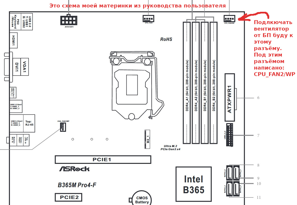 CHiCHo, Исходя из прошлого моего сообщения я думаю, что установка в мой БП вентилятора be quiet! SILENT WINGS 3 [BL066] и подключение его не к разъёму в самом БП, а к 4-ёх пиновому разъёму на материнской плате - вполне себе нормальная идея. И ещё если учесть, что я подключу данный вентилятор ко второму 4-пиновому разъему на моей материнке, который рассчитан на подключение второго вентилятора для ЦП, и материнка, насколько я понимаю, тогда будет задавать обороты для вентилятора be quiet! SILENT WINGS 3 [BL066], стоящем в БП, в зависимости от загруженности процессора (или, правильнее сказать, от температуры ЦП, но его температура прямо пропорциональна его электропотреблению) В таком случае блок питания должен охлаждаться оптимально - в зависимости от загруженности процессора и видеоядра/ядер, встроенного в него; чем выше загруженность, тем больше электропотребление и нагрузка на блок питания, и рассматриваемый вентилятор в блоке питания будет раскручиваться сильнее тогда, управляемый от материнки через второй разъем для вентилятора для ЦП. Для наглядности приведу схему моей материнки, на которой показан этот второй разъём для вентилятора ЦП: