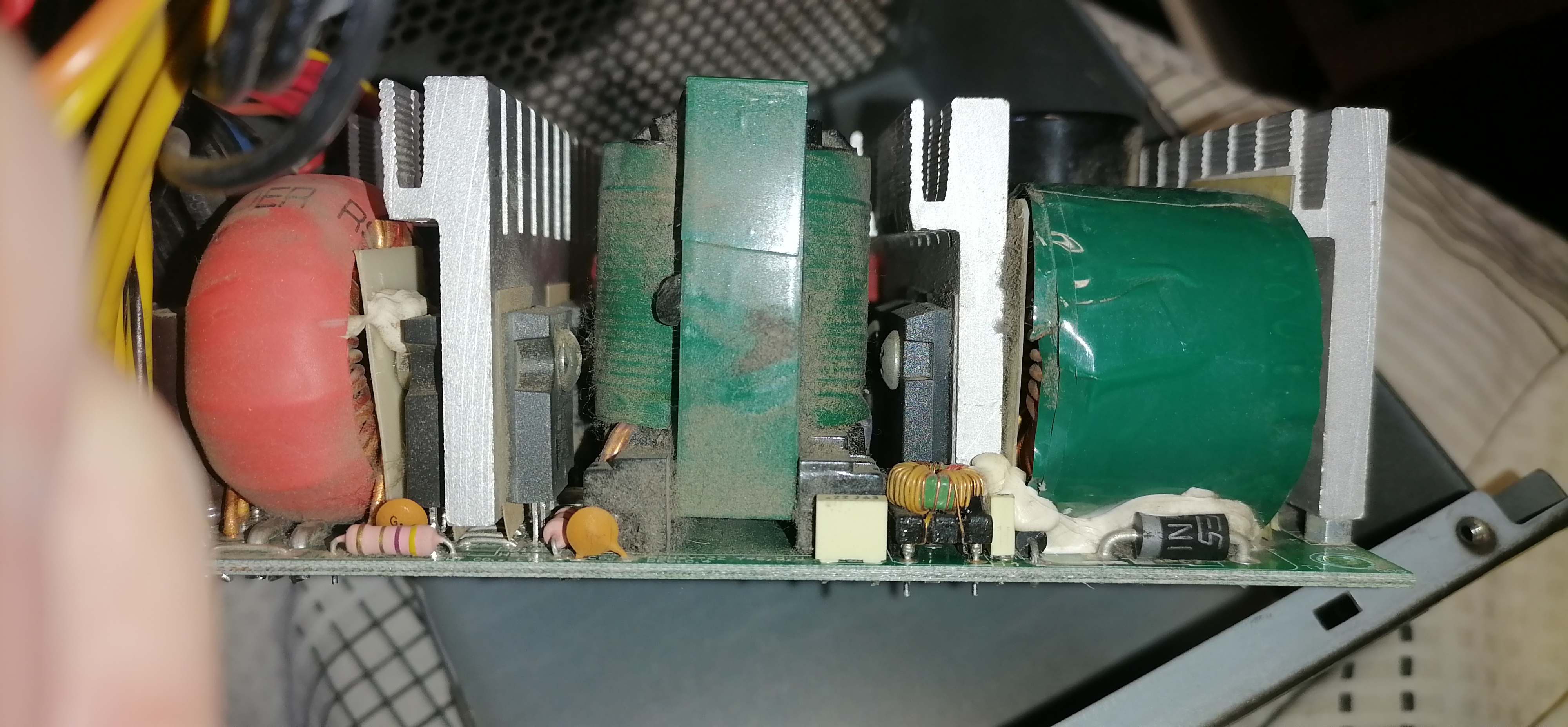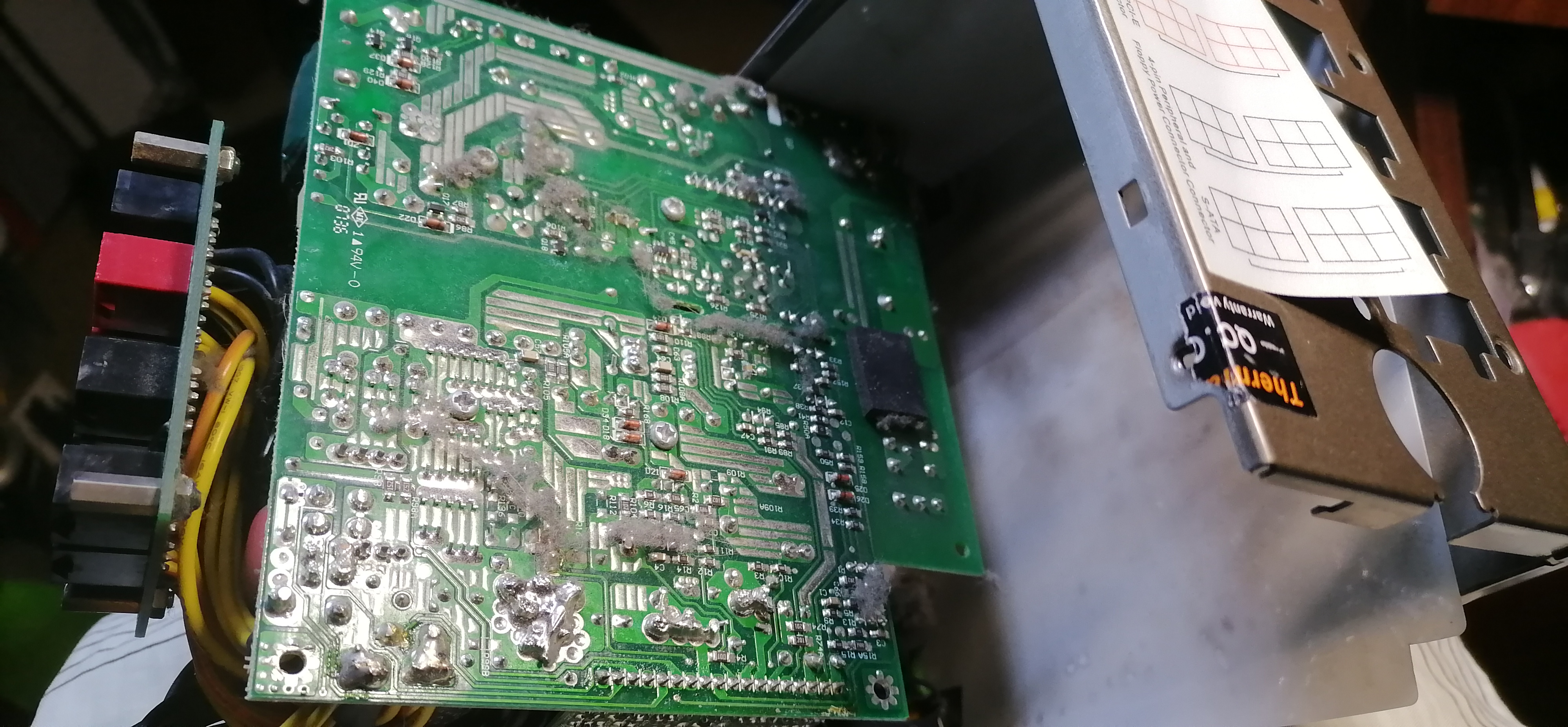 достался вот такой вот БП Termaltake на 850w. такой же как и мой, разница в ваттах. потому решил свой 750 заменить, хоть и работает, но лет Н-цать не трогал и черт знает сколько там пыли.... разобрал 850w. пыль аж шмотками, везде, вперемежку с волосами и радиаторы забиты ею, что мешает проходу воздуха, да и пылесос не везде берет. пришлось разбирать. тк пыль еще и между контактами на платах "замыкает". чутка влаги и коротыш обеспечен. над было всё зафотать, но поздно вспомнил. часть на фото после пылесоса, но до разборки если не забуду, зафотаю старый, если когда доберусь разобрать для как в запас. вентиль вроде еще нормальный, но решил поставить сразу новый D14BH-12, чтоб потом не лазить. встал как родной. подумываю еще допфильтр втыкнуть, чтоб поменьше пыли внутри копилось. жду когда приедет.