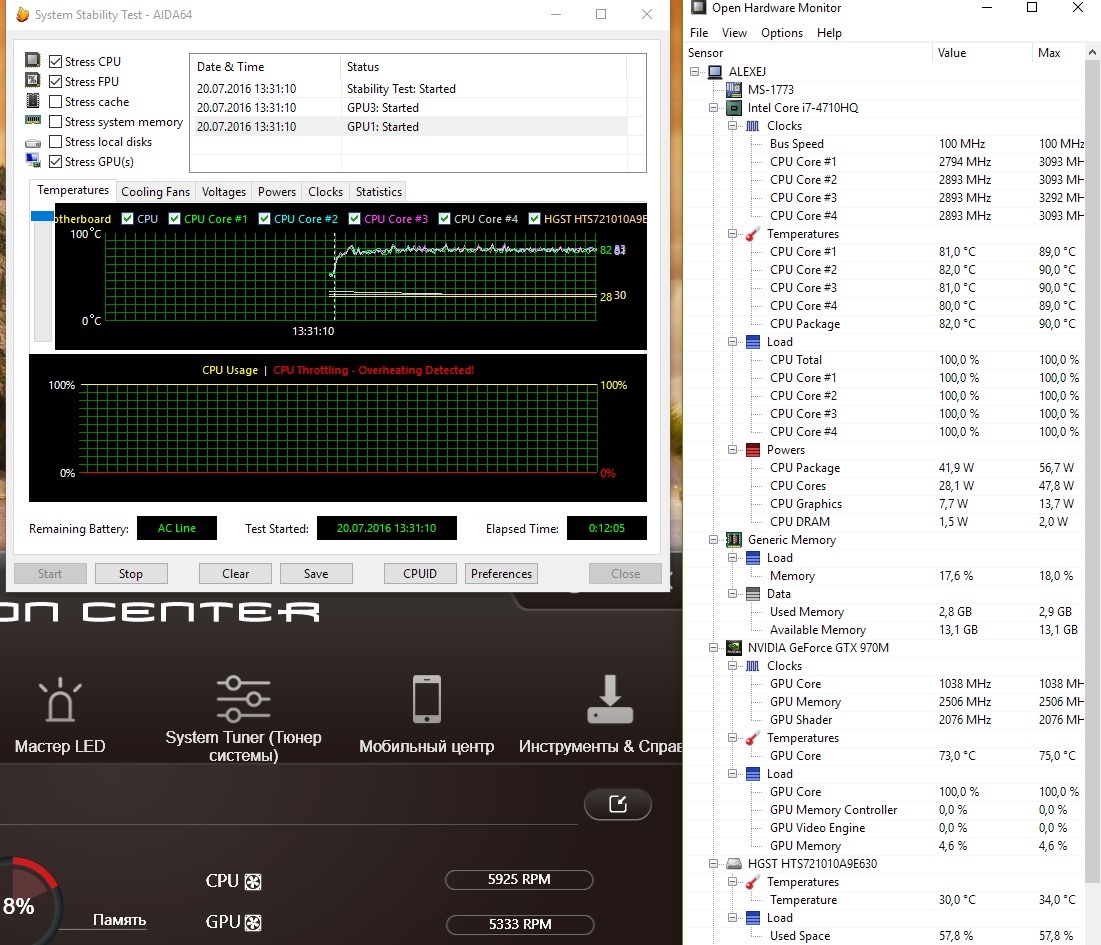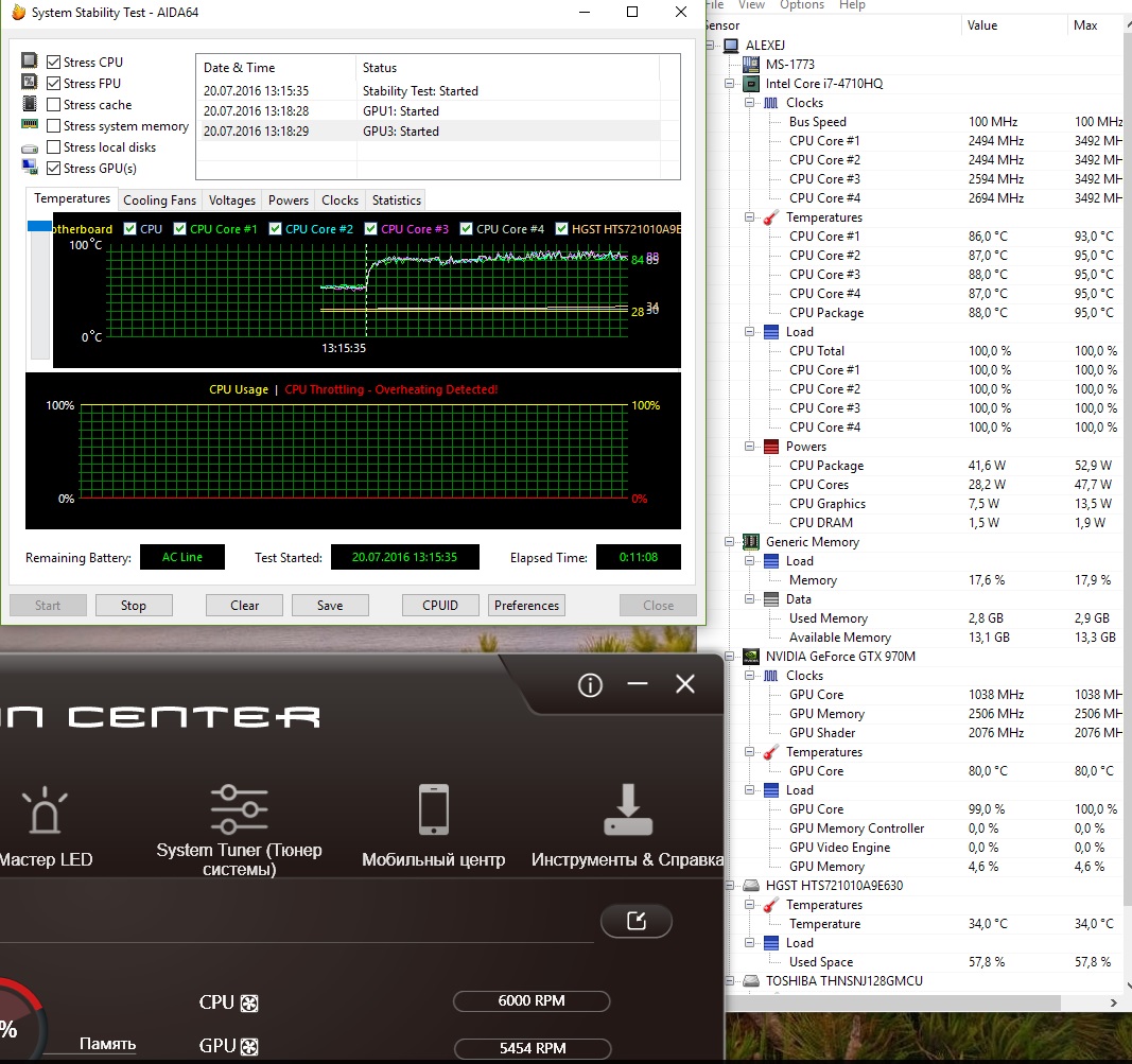 Ну у меня пока нечего сказать, дней десять только пользуюсь. Первый файл с подставкой, второй без подставки. Следует заметить что тест с FPU, CPU и iGPU то есть встройка HD процессора тоже работает, что в реале не бывает в играх и др. Ну и ноут у меня уже писал какой.