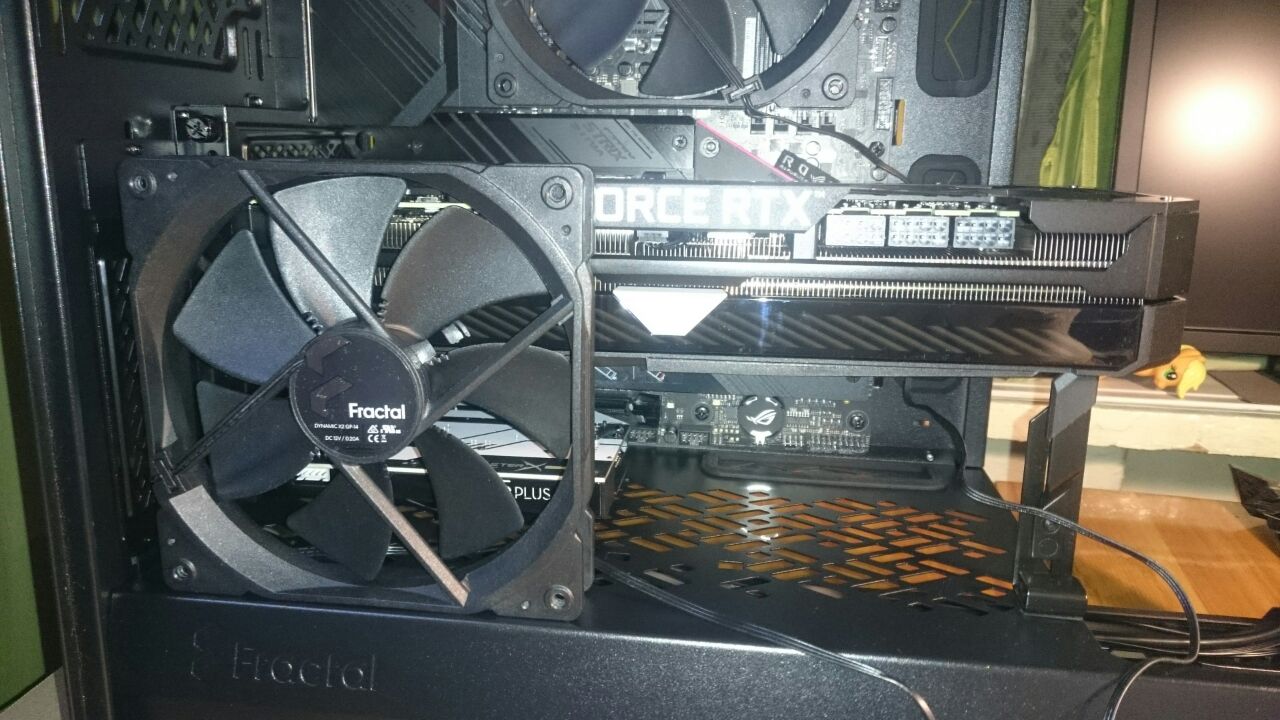Ребят, нашел решение проблемы с избыточным забором холодного воздуха для видюхи, вот так 140ник будет снимать с радиатора весь горячий воздух не мешая потоку. Зайдет идея?