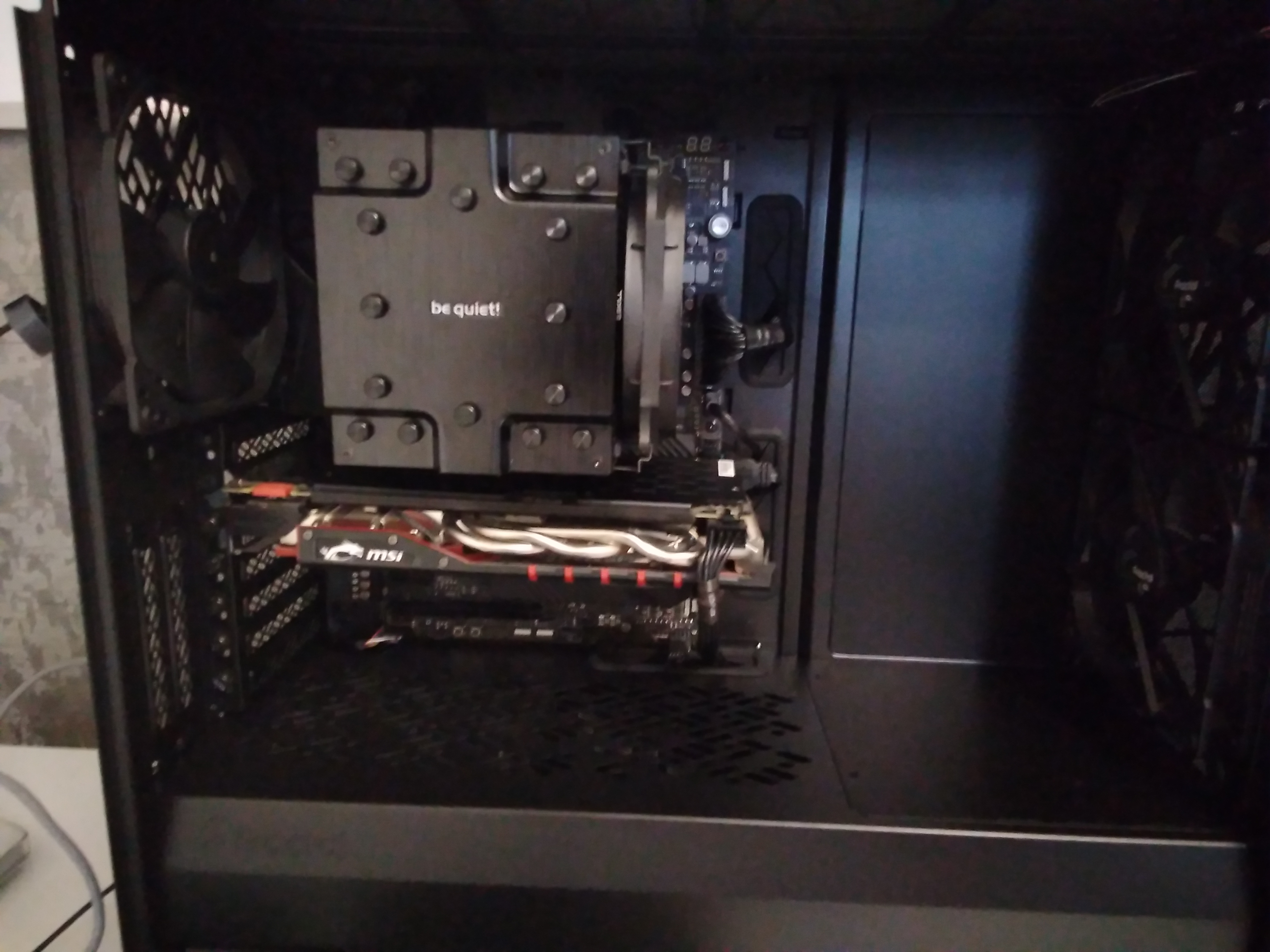 walkman_w902 Если прям конкретно нужно охлаждать видеокарту, тогда на выдув вверх, а на вдув - в дно. Вы про верхний ( в крыше) вентилятор на выдув вообще ничего не написали. Вы надеетесь, что один единственный задний вентилятор будет горячий воздух из воздуха нормально отводить? Не надейтесь. От процессора то он отведёт, а от видеокарты - нет. В результате весь корпус внутри,включая оперативную память прогреется теплом от видеокарты,