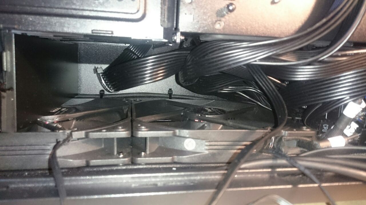 Наша задача - любыми способами загнать воздух ПОД видеокарту, если все на воздухе. Вот эту задачу и надо реализовывать в корпусе. Вся нагрузка ложится на 2 выносных вентиля - тыл и верх-зад.