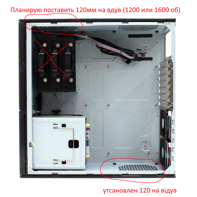 Рекомендация та же. Сейчас поищу ТХ штатных вентиляторов, если это недодуи, придётся заменить задний на эффективный типа BL066 или А12.