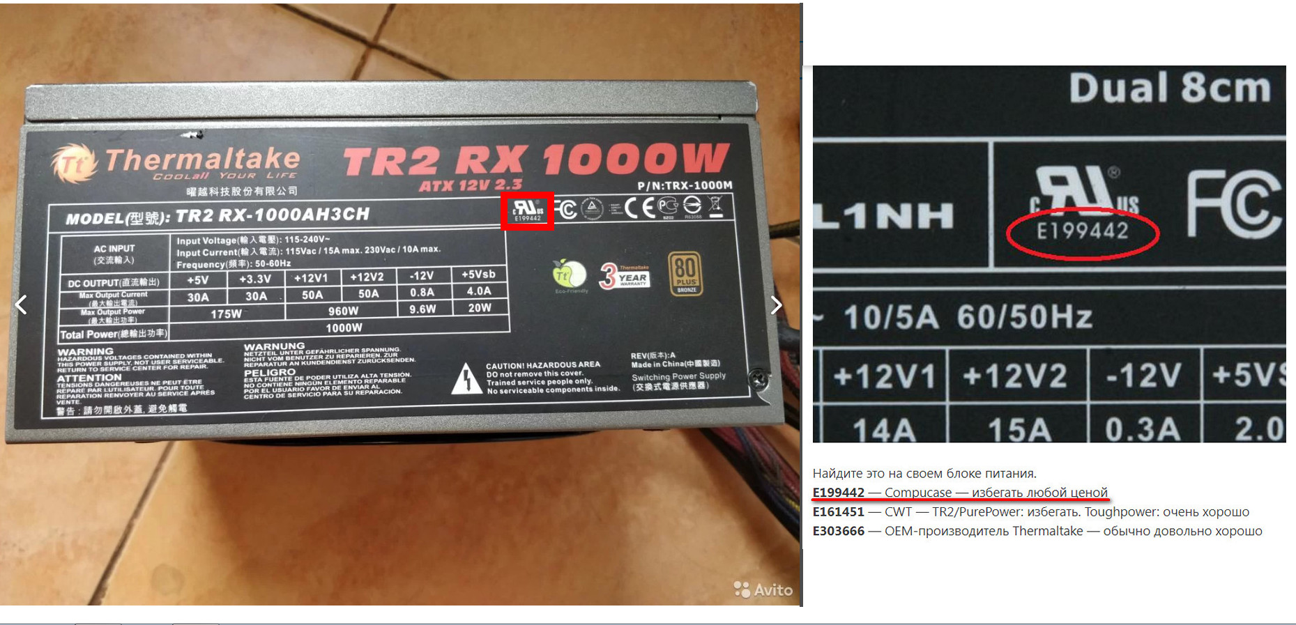 БП сверху для горячего железа, это нонсенс, архаизм, анахронизм ... Устанавливать БП вверх чревато, особенно сомнительного качества ! Ваш БП - Thermaltake TR2 RX 1000W. Рабочая температура до +40 °C На шильдике я вижу №Е199442. Сведущие пишут - такие НЕ брать !