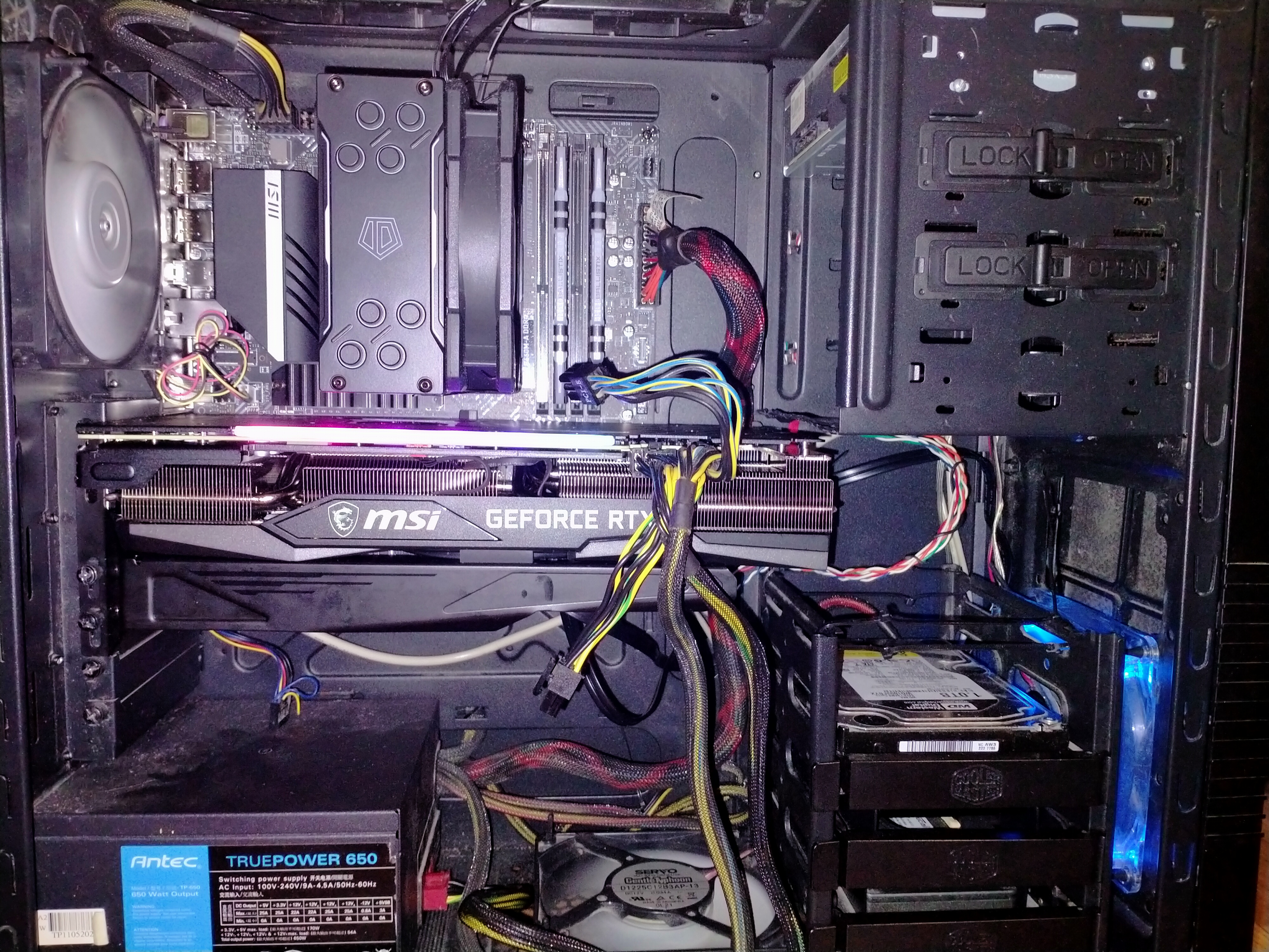 В итоге радиатор СВО спереди, 1х140 на выдув сзади, 2х140 на выдув сверху. Больше ничего не придумать. Ну разве что для охлаждения HDD под корзину можно установить ещё вертушку, но нужно ли? Производитель кстати нигде не упомянул, что туда ставятся две вертушки или одна, если спереди радиатор СВО. А ведь техническая возможность есть https://youtu.be/rk-CvBNqwFc. (10:08)