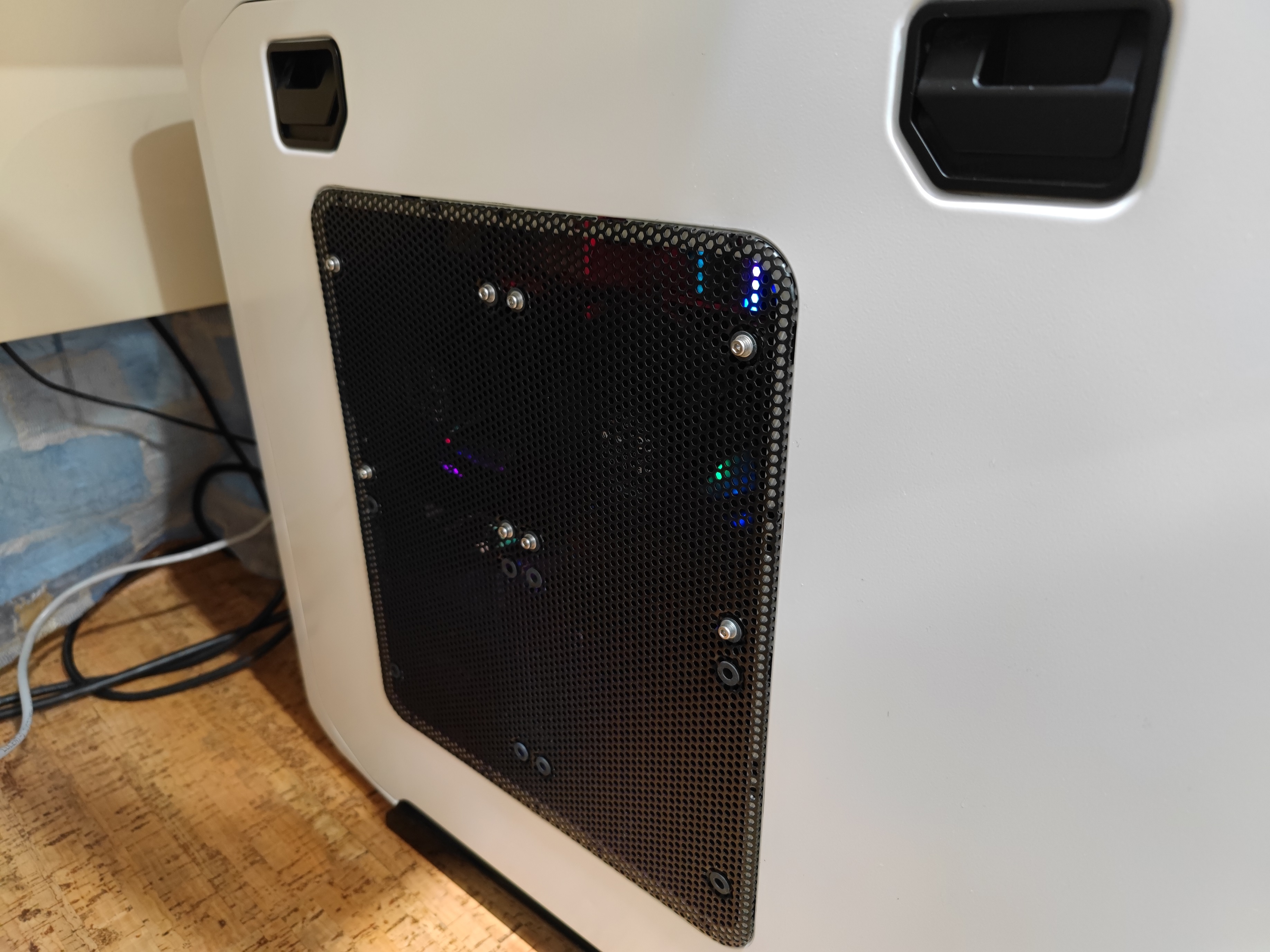 У меня дома есть комп с 3080ти (Рог стрикс) в корпусе Корсар Графит 600Т. В итоге на боковую сетку, в 2 верхних посадочных, установил 2х120 фена на выдув - они дуют в работе карты ощутимо теплым воздухом. Потому что выше карты огромная дурацкая засасывающая перегородка в виде N-HD14, верхний фен мало что сосет (он на малых оборотах, 700-800, не более, иначе шумно), а один тыловой не тащит 400 Вт и еще тепло от проца, к тому же, к нему из-за башни не доходит тепло от передней части ВК. А вот боковыми оно свободно уносится, как раз они стоят от середины карты между крышкой и башней, и зазор еще есть. Разгоняются боковые только в нагрузке на ВК, т.ч. в простое не отнимают воздух у проца.