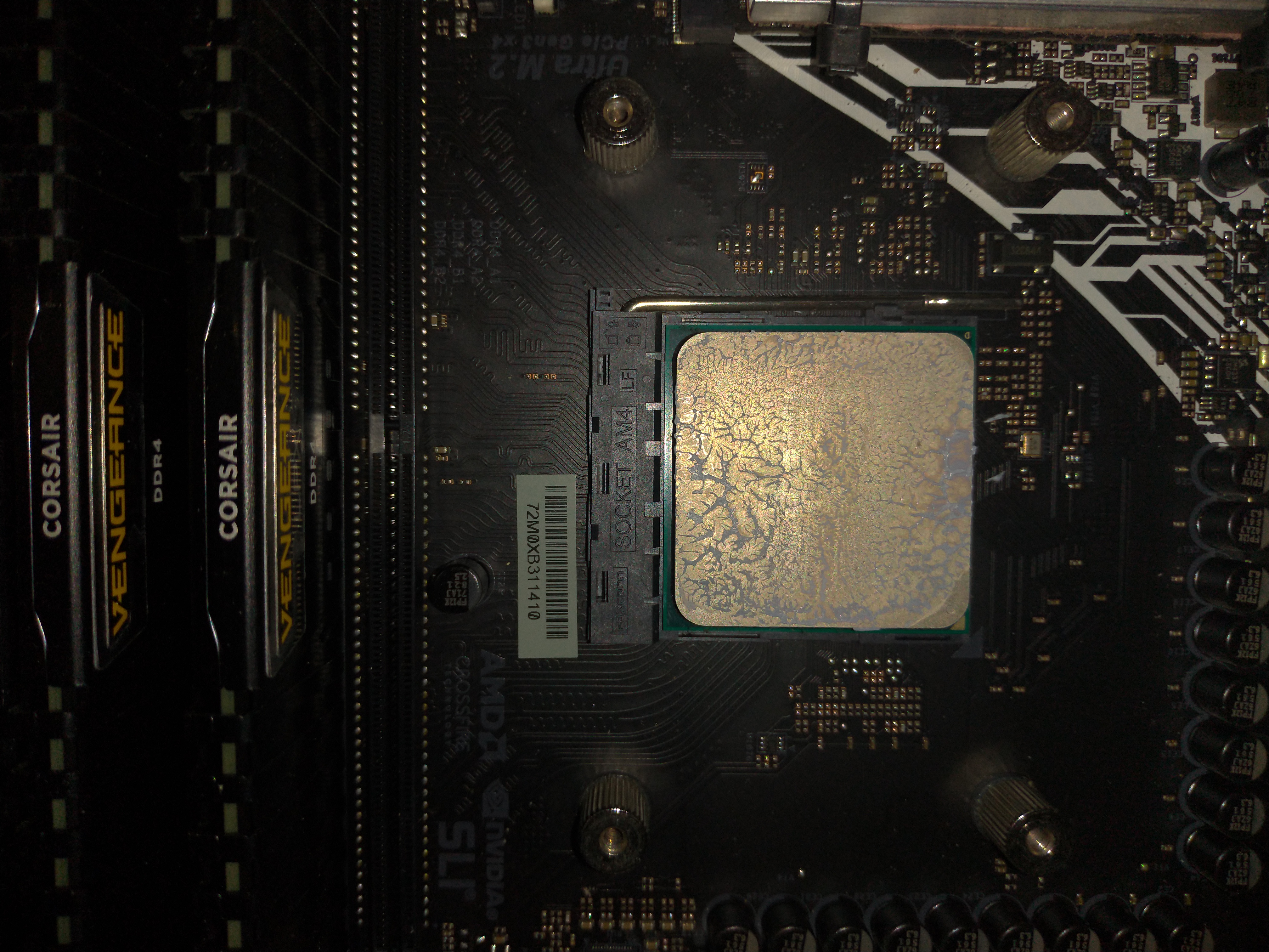 жесть Решил проверить свой проц и подошву кулера. Тоже использую Thermal Grizzly Kryonaut. Покупался не на али, а в днс. Только у меня ryzen и крышка наверное из других материалов. 9 месяцев назад перемазывал. скину фотки