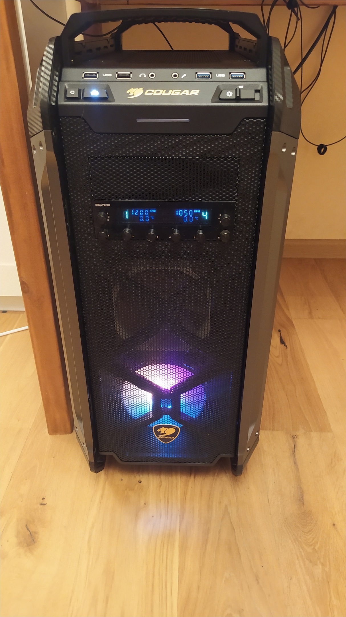 Ну всё, ноктуа, арктики, дипкулы, гейм штормы, задвинуты на самое дно, понадобилась 140-ка на тыл со светяшками, обратил внимание на LIAN LI UNI FAN SL V2 140, сегодня забрал. Воткнул, это первый вентилятор который не имеет посторонних раздражающих призвуков на выдув через тыльную решётку, это первый вентилятор которому не нужна виброразвязка, шурупами прикрутил, ШУРУПАМИ. Раньше все 140 вентиляторы на тыл ставил на резиновые гвозди и придел их комфорта по шуму был 700-800 оборотов, дальше вой, гул, и не пойми что. UNI FAN SL спокойно и непринуждённо можно раскручивать до 1250 оборотов без вреда для ушей, шума нет, поток есть, как они это сделали. Подсветка, ну тут на вкус и цвет, мне линии по краям больше понравились чем диоды в центре.