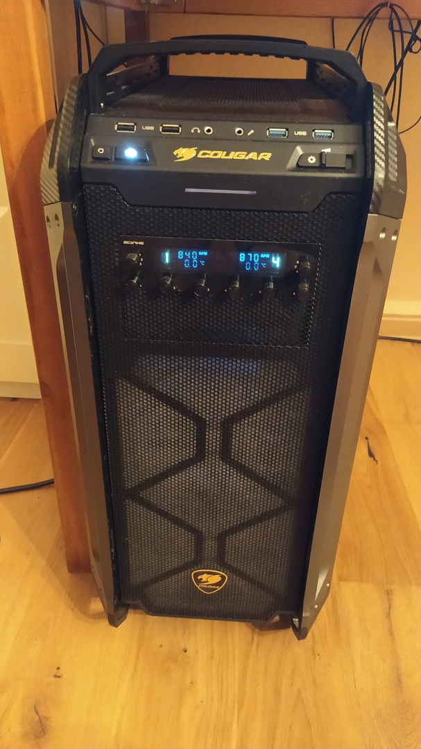 Ханыга И какие обороты у тебя в такую жару? Я вот 1250-1350 ставлю на передние когда играю, это сейчас в жару. И гудят конечно не так чтобы как боинг, но без наушников резонанс слышно... А так хватает 1050 оборотов, при нормальной комнатной температуры 22*. Стекло по крайне мере холодное. С верху вентилей не ставил, но думаю надо, как раз Noctua NF-F12 свободный лежит, который впереди стоял. Но многие мне говорят, убрать этот реобасс и поставить третий 140мм. Но жаба душит вытаскивать мою "магнитолу", уж слишком я привык её крутить. На выхлопе поставил Noctua NF-S12b redux 120mm, вполне справляется с задачей. Ещё хотел спросить кто каким сетевым фильтром пользуется?