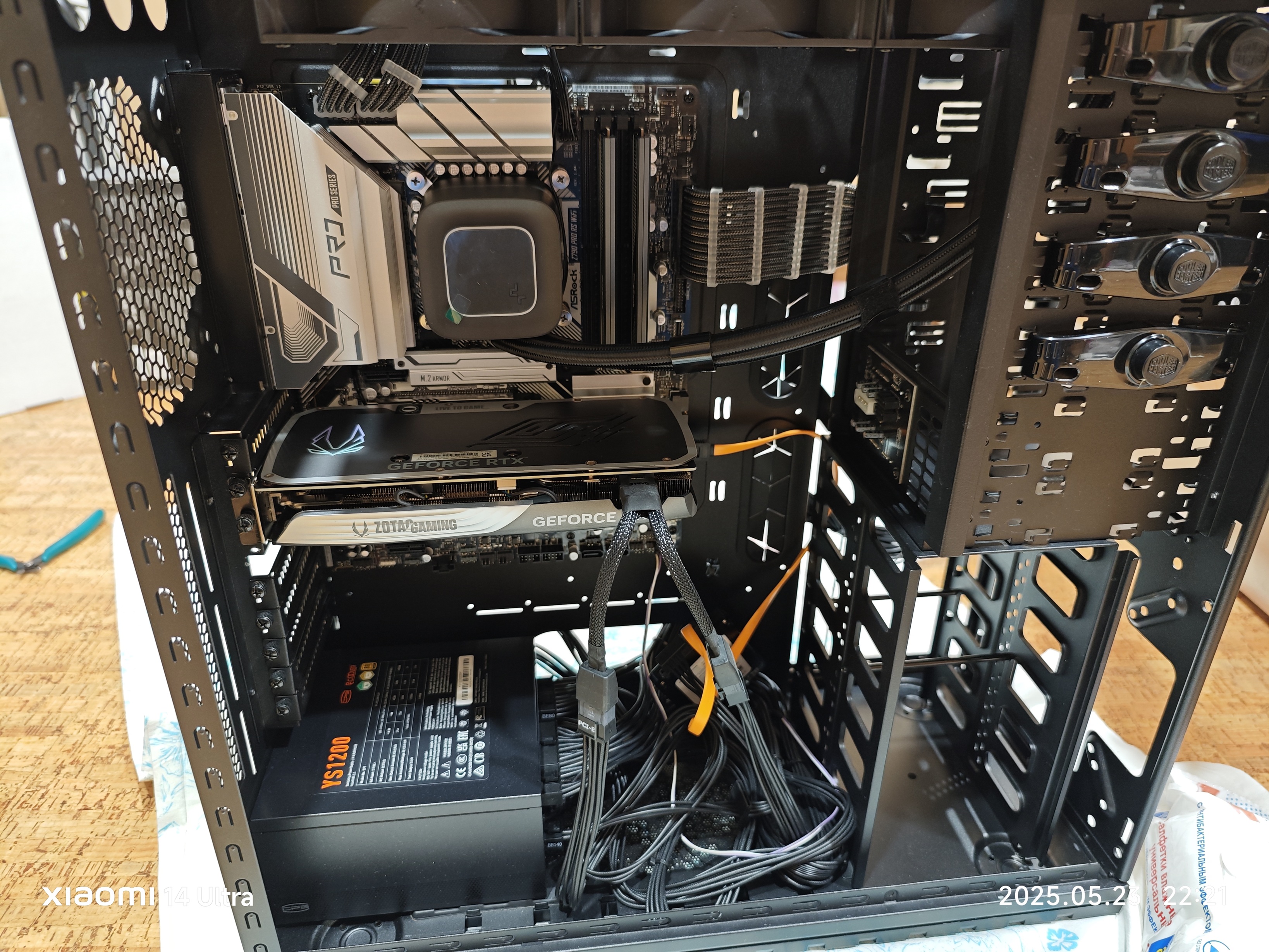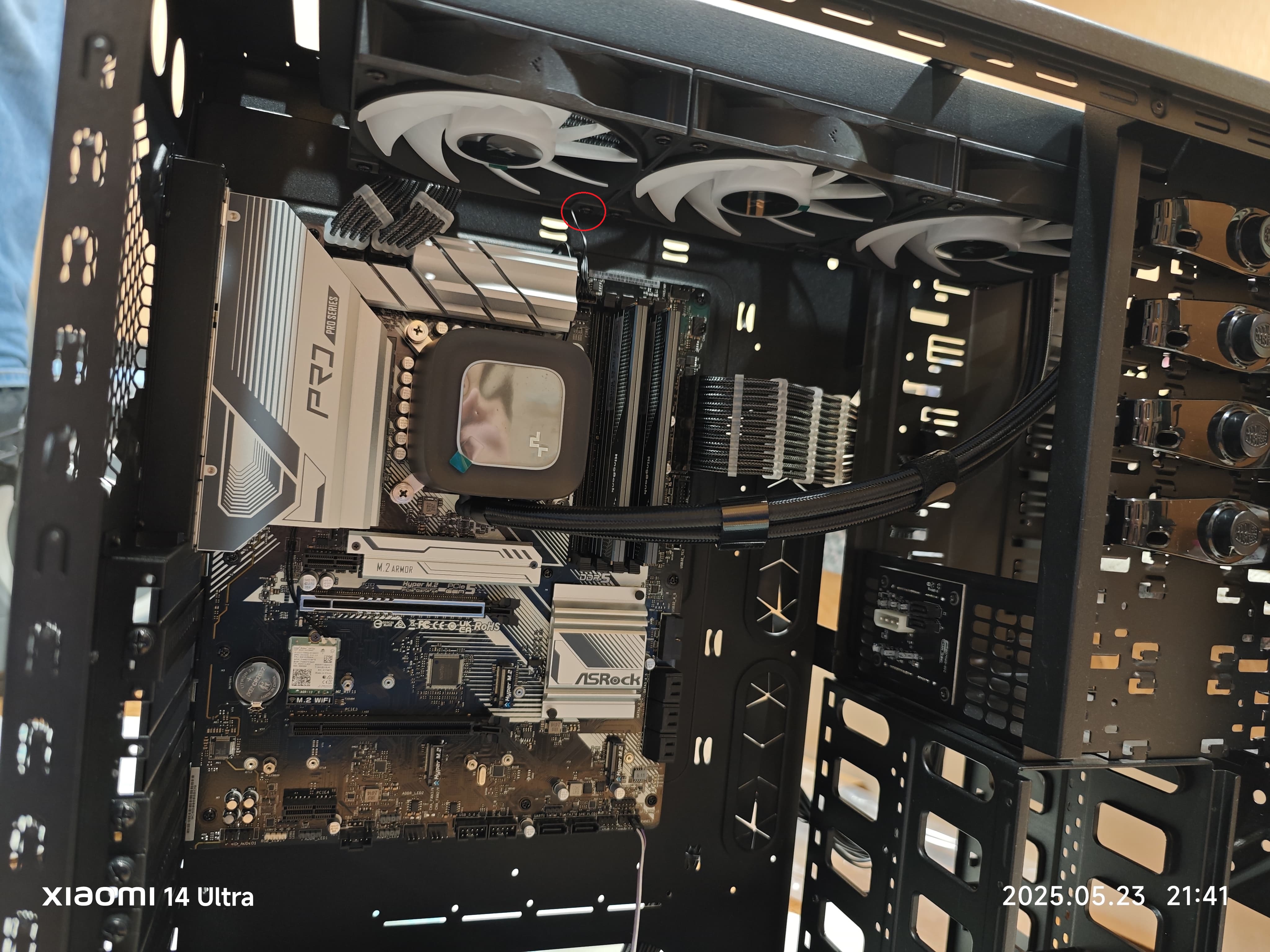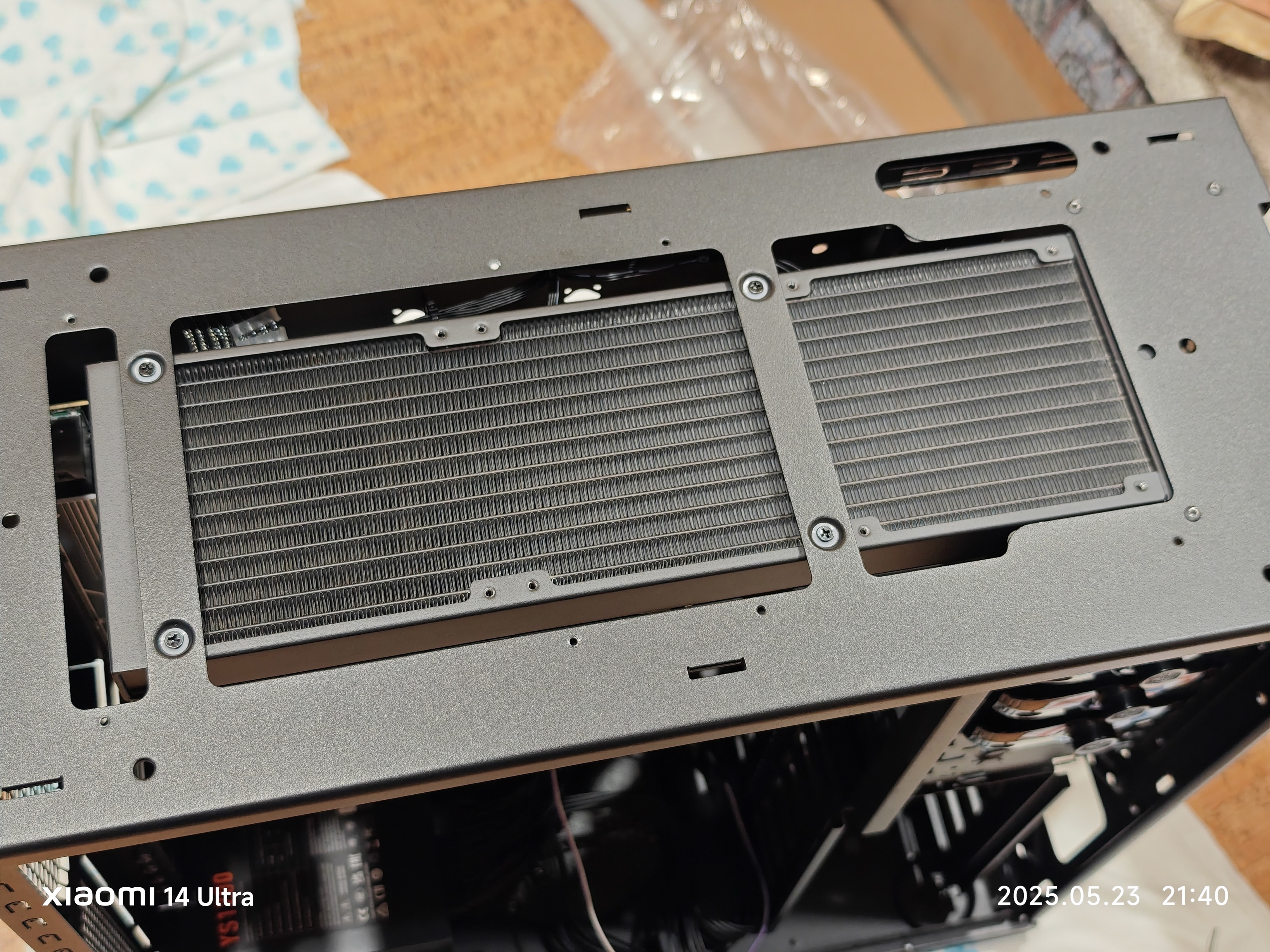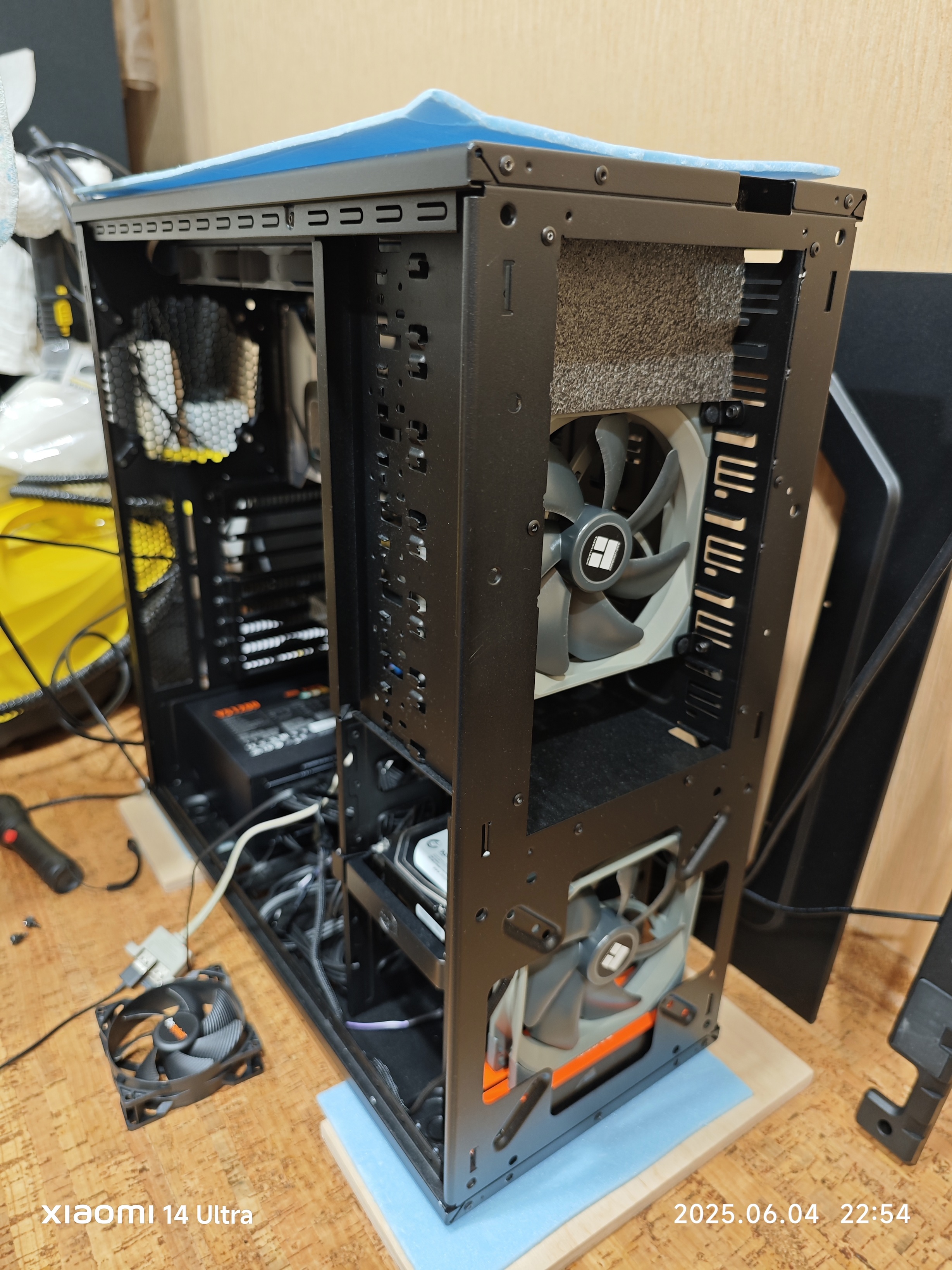 да я ж говорю - будет стоять 4 хдд) пока никак не убрать... Так-то я уже вверху приспособил на уголках 140ку, она будет подавать свежее на самую горячиую секцию АИО и проталкивать горячий воздух от ВК кзади, а там 140мм + 200 надо аио.