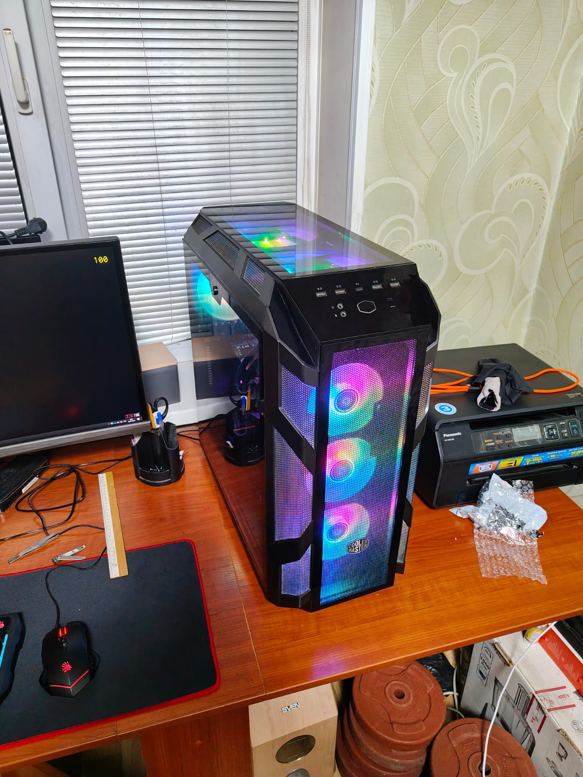 Позже, можно настроить, в БИОС, обороты вентиляторов отдельно, верхний для процессора, нижний, для видеокарты. Корпус, после всех манипуляций, должен быть закрыт.