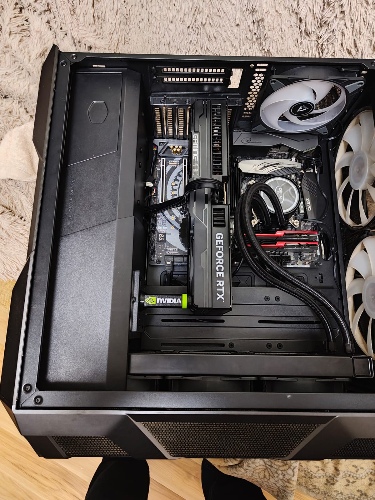 зря только колхозил крепление под вторую 200mm на морде. На проце убыло, на видюхе столько же прибыло градусов. В принципе вполне годный продув по сегодняшним меркам для 7800x3d + 5080.