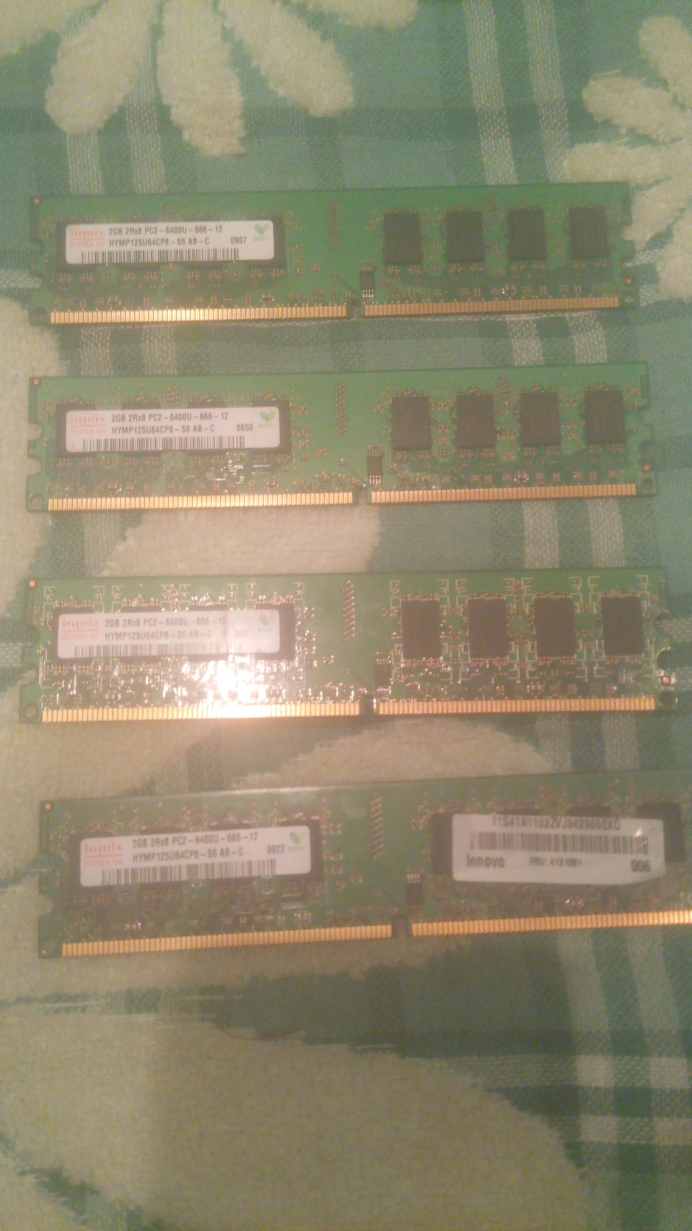 Имеется плата ASUS P5B, недавно достались малой кровью модули памяти х4 шт память 2gb 29о8-6400u-666-12 Hymp125u64cp8-s6 ab-c, подвернулся случай так сказать сделать апгрейд, но не так то было, монитор не стартует.