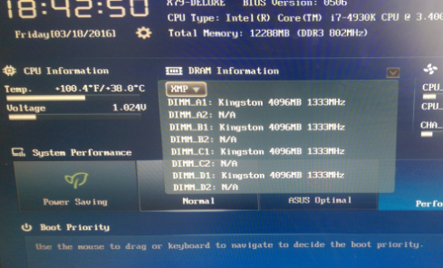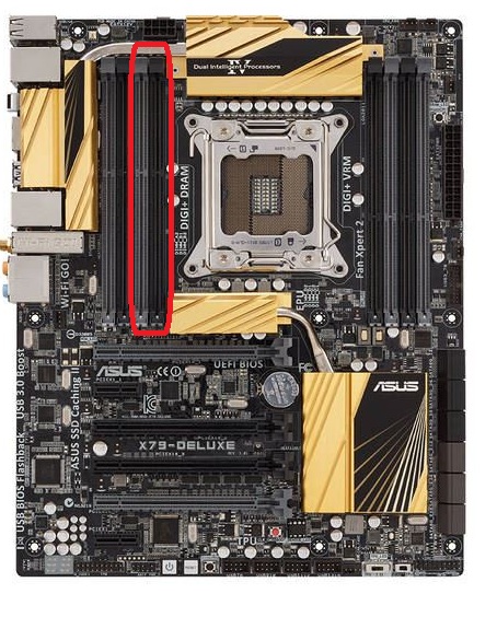 Добрый день, Периодически пропадает емкость одной планки оперативной памяти (4 Гб), как в БИОС, так и ОС если установлено 16 Гб. Распознается примерно раз через три после выключения компа 12 Гб из 16 Гб. Не работает слот В1. Если ставишь 32 Гб - распознается только 24 Гб. Не работают планки в слотах В1 и В2. См. рис "Нерабочие слоты". Если ставить планку только в В1 или В2 - компьютер не заведется. Нажатие на МемОК, сброс БИОС, обновление БИОС не помогло. Плата ASUS X79-Deluxe. Проц. 4930k Основная память 16 Гб - G.SKILL F3-2666C11Q-16GZHD Дополнительная память для диагностики - Kingston KHX18C9T2K4/16X В БИОС это выглядит так. Когда установлены 8 модулей по 4 Гб - распознается не 32 Гб, а 24 Гб. Когда удаляешь планки из этих слотов - объем памяти так и остается 24 Гб. См рисунки Если убрать память из других слотов, но оставить в В1 и В2 - объем памяти будет уменьшаться. Кто знает, что это может быть? Спасибо!