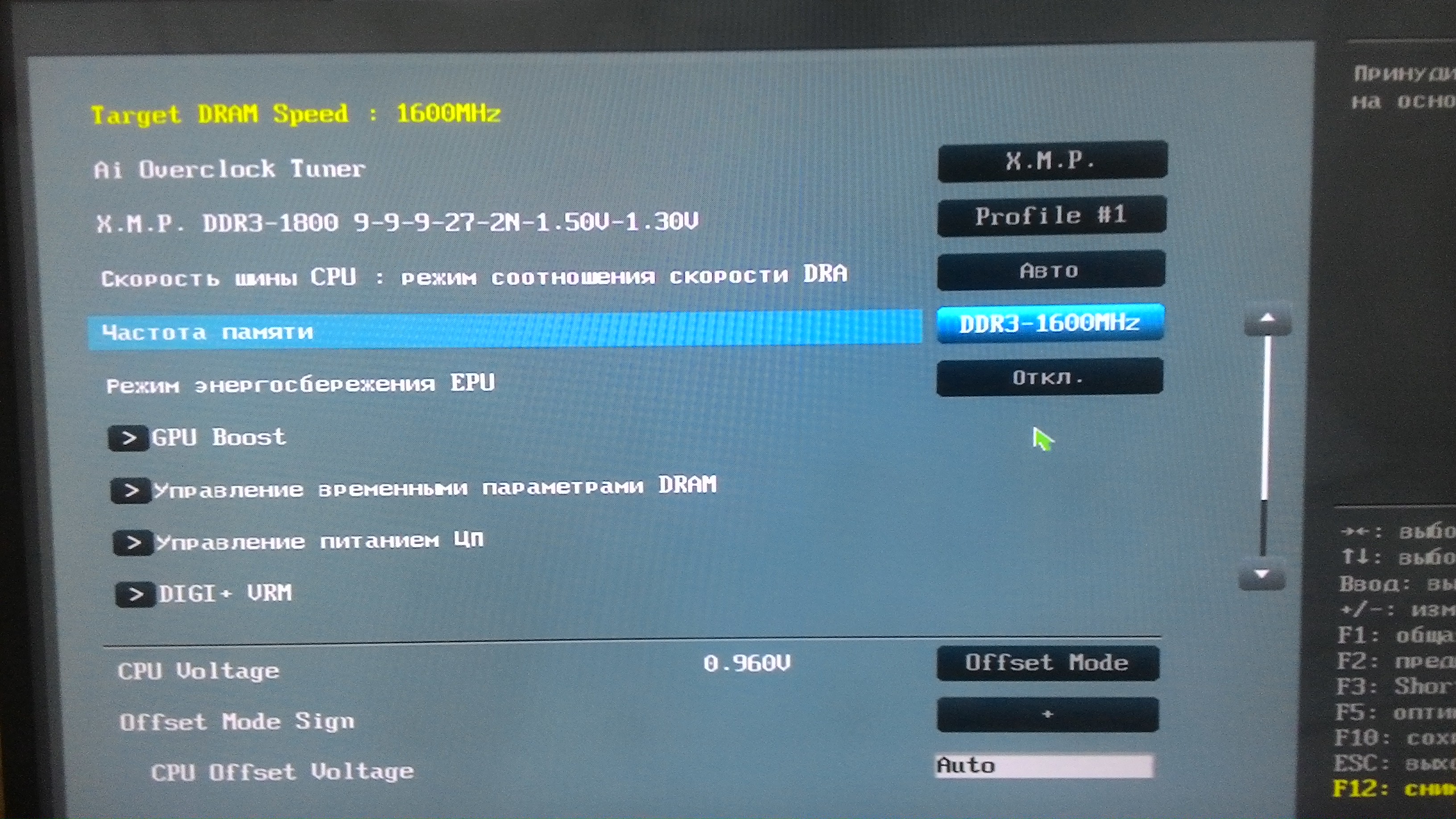 Добавлено спустя 1 минуту 10 секунд: Vadim++ Через X.M.P и поднял до 1600, в стоке мать ставила 1333 МГц. Там всего один профиль на частоту 1800 Мгц и уже только он редактируется.