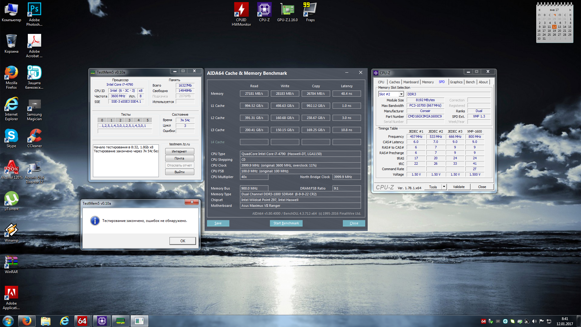 Народ подскажи те как мой результат ? Память corsair dominator cmd16gx3m2a1600c9 профиль xm 1600MHz 9-9-9-24 2t 1.50v то получилось 1800MHz 8-9-9-22 2t 1.7v система стабильна во всем игра и тд.