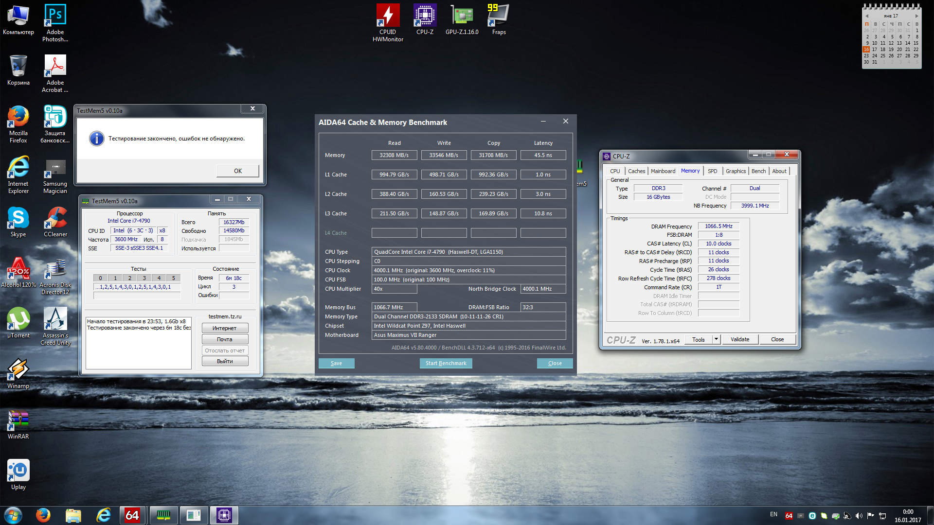 Добрый вечер! Приобрёл Kingston HyperX FURY комплект из двух плашек по 8 Гб, в стоке нормально работает на 1600 10-10-10-30 1,5В. До этого стояли Kingston Hyper X пяти летней давности две по 4Гб, запросто разгонялись до 2133 на 12-12-12-30 1,65В, система работала сутками при разогнаном проце. Новые плашки моё умение разгонять память поставили в тупик... Добился полной стабильности только на 1866 10-10-10-34 1 250(Trfc) 1,65В . Еще запускается на 2000 11-11-11-44 1 320 1,65В, но через 1,5-2 часа комп тупо перезагружается. На частоте 2000 тесты ошибок не выявляют, под хорошей нагрузкой происходит перезагрузка через 1-1,5 часа. На 2133 не стартует вообще никак. Интересно что настройка первичных таймингов никак не влияет на дальнейший разгон. Хоть 14-14-14 поставь комп не стартует. Мало того слишком длинные тайминги ухудшают стабильность! - Почему?? Например на 2000 поставить 11-12-12 и комп еще раньше перезагрузится. Материнка Asrok z87 pro3, i7 4790K разогнан до 4,6.