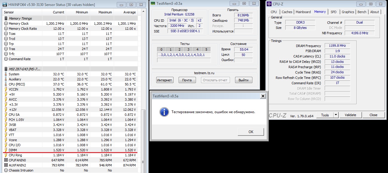 самый дешевый samsung на 2x8gb отдал 6000 руб за нее и вот что получилось под напругой 1,65V, у матери к сожалению шаг только в 0,15 ((( 100% стабильная работа во всех знакомых мне стресс тестах. Достойный результат за такие деньги? модули на ощупь горячее но не жжёт..