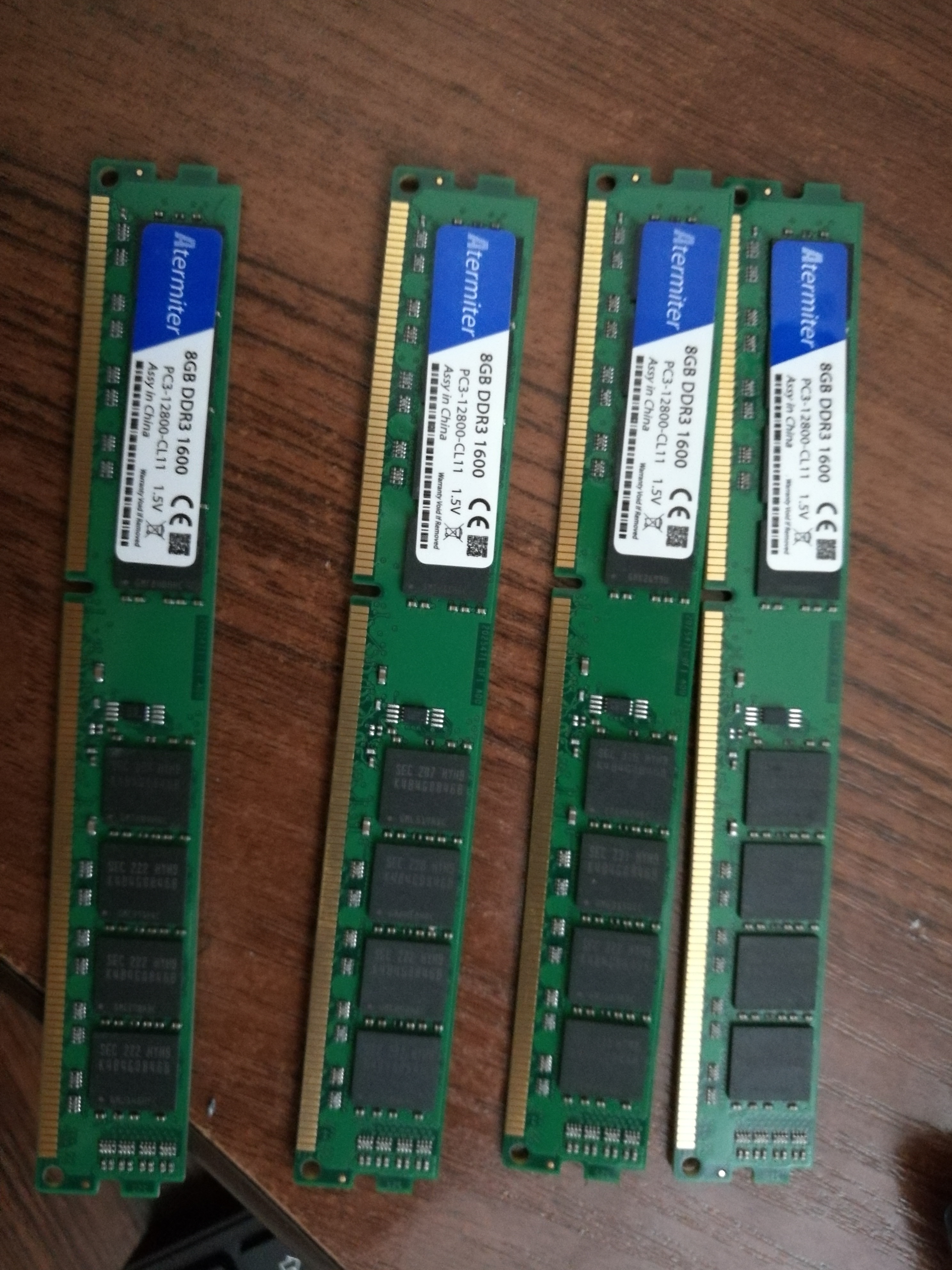 Моя история провала с китайской ddr3 Atermiter. Заказал 4 планки по 8гб, с купоном вышло около 7к рублей. Вчера они пришли, поставил в комп, мать выставила автоматом 1600 11-11-11-28-CR1 и напругу авто 1.545v. Чипы самсунг ddr3l 1333. Ну думаю, че-то высоковатые тайминги для 1600, попробую на 1866 запустить, подняв tRas до 30. Винда запустилась, но в testmem ошибки посыпались через 10 секунд, окей, выключил. Накатил 1.65в, опять запустил, опять ошибки в testmem. Поднял еще тайминги до 12-ых, нифига не дало, решил попробовать снизить тайминги на стоковых 1600, но при 1.65в. Тоже ниже 11-х в testmem начинали сыпаться ошибки и сразу бсод вылетал. В общем решил в авто поставить всё и уже наконец-то нормально посидеть на 32-х гигах, как комп не включился, спикер начал 4 коротких сигнала выдавать. Полез переставлять планки местами, запускать по одной и т.п., в итоге нашел ту самую плашку, из-за которой проблемы. Подозреваю, что не выдержала разгона с 1.65в и померла. 3 другие в любых комбинациях работают норм, в том числе и с моей старой 2-х гиговой плашкой крушиал на 1600. Открыл спор типа 1 плашка нерабочая пришла (да, нехорошо так делать, но 1840р жалко), записал видео, посмотрим, что получится.
